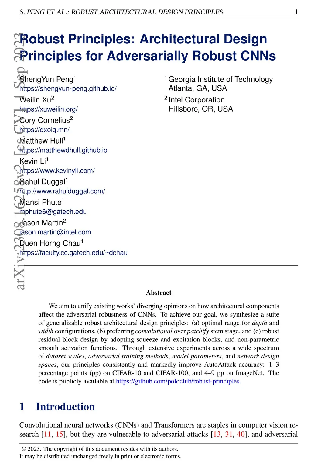 Robust Principles: Architectural Design Principles for Adversarially Robust CNNs