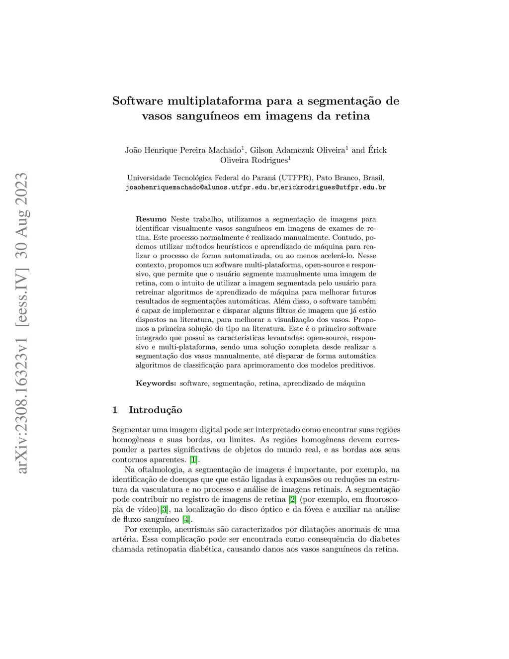 Software multiplataforma para a segmentação de vasos sanguíneos