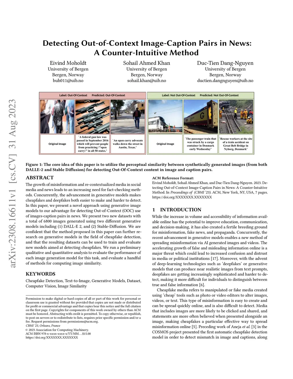 Detecting Out-of-Context Image-Caption Pairs in News: A