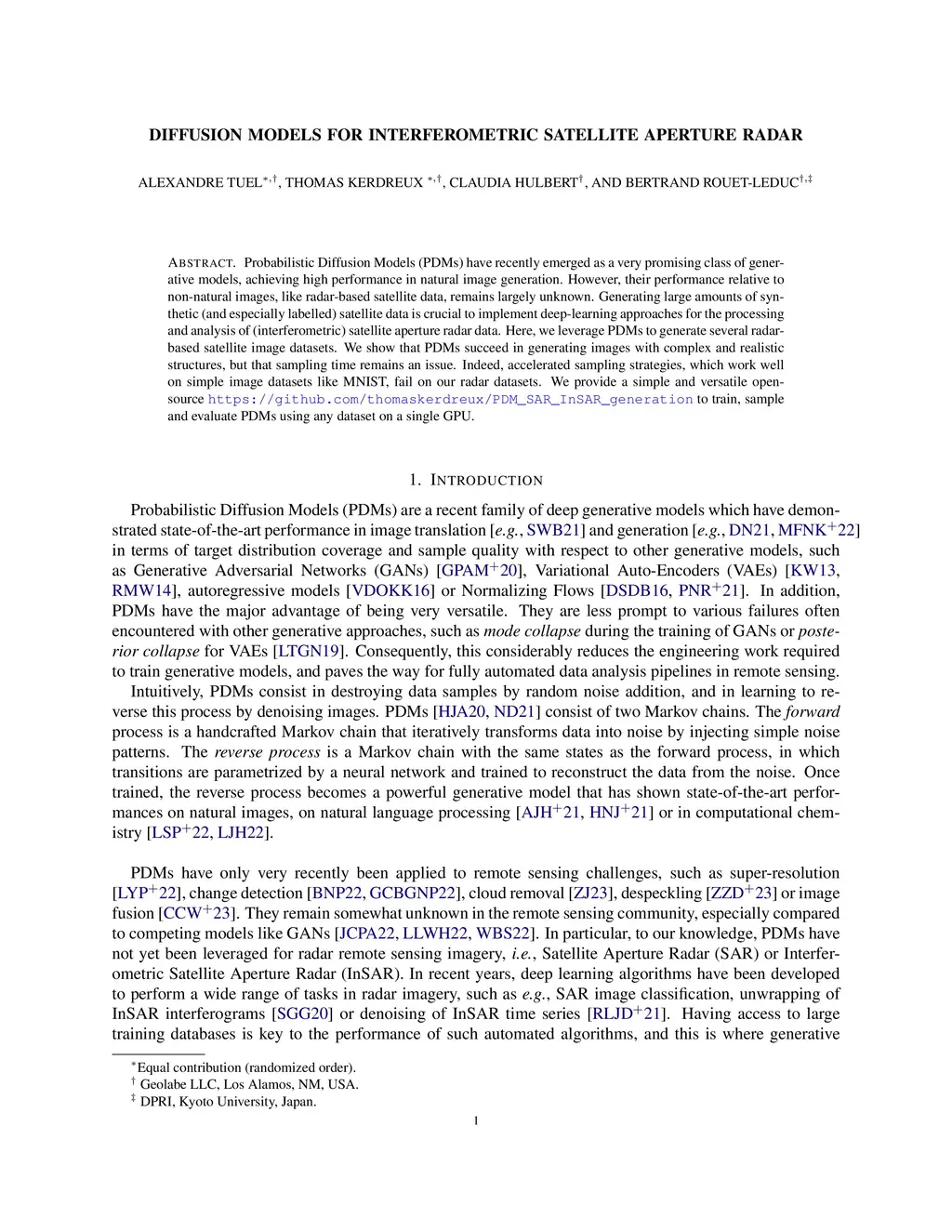 Diffusion Models for Interferometric Satellite Aperture Radar