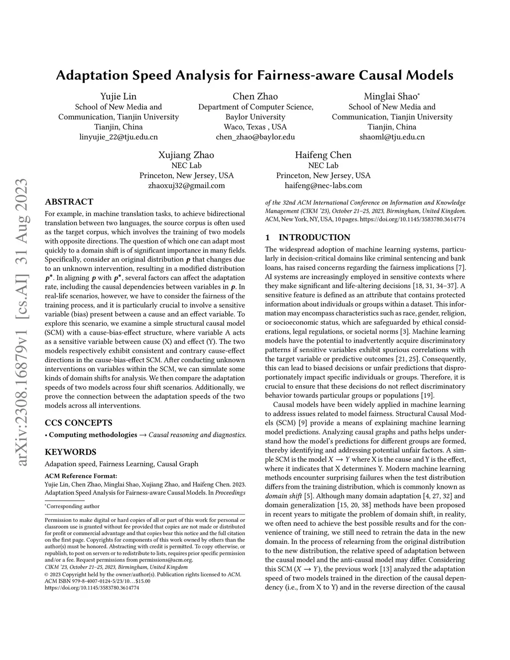 For example, in machine translation tasks, to achieve bidirectional translation between two languages, the source corpus is often used as the target corpus, which involves the training of two models with opposite directions. The question of which one can adapt most quickly to a domain shift is of significant importance in many fields. Specifically, consider an original distribution p that changes due to an unknown intervention, resulting in a modified distribution p*. In aligning p with p*, several factors can affect the adaptation rate, including the causal dependencies between variables in p. In real-life scenarios, however, we have to consider the fairness of the training process, and it is particularly crucial to involve a sensitive variable (bias) present between a cause and an effect variable. To explore this scenario, we examine a simple structural causal model (SCM) with a cause-bias-effect structure, where variable A acts as a sensitive variable between cause (X) and effect (Y). The two models, respectively, exhibit consistent and contrary cause-effect directions in the cause-bias-effect SCM. After conducting unknown interventions on variables within the SCM, we can simulate some kinds of domain shifts for analysis. We then compare the adaptation speeds of two models across four shift scenarios. Additionally, we prove the connection between the adaptation speeds of the two models across all interventions.