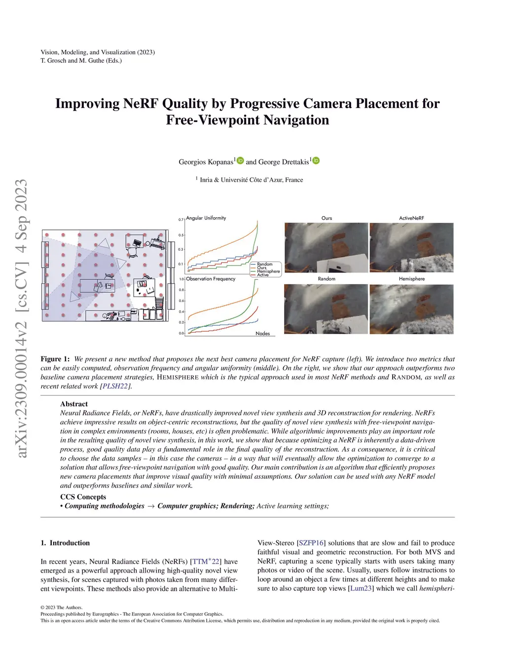 Neural Radiance Fields, or NeRFs, have drastically improved novel view synthesis and 3D reconstruction for rendering. NeRFs achieve impressive results on object-centric reconstructions, but the quality of novel view synthesis with free-viewpoint navigation in complex environments (rooms, houses, etc) is often problematic. While algorithmic improvements play an important role in the resulting quality of novel view synthesis, in this work, we show that because optimizing a NeRF is inherently a data-driven process, good quality data play a fundamental role in the final quality of the reconstruction. As a consequence, it is critical to choose the data samples -- in this case the cameras -- in a way that will eventually allow the optimization to converge to a solution that allows free-viewpoint navigation with good quality. Our main contribution is an algorithm that efficiently proposes new camera placements that improve visual quality with minimal assumptions. Our solution can be used with any NeRF model and outperforms baselines and similar work.