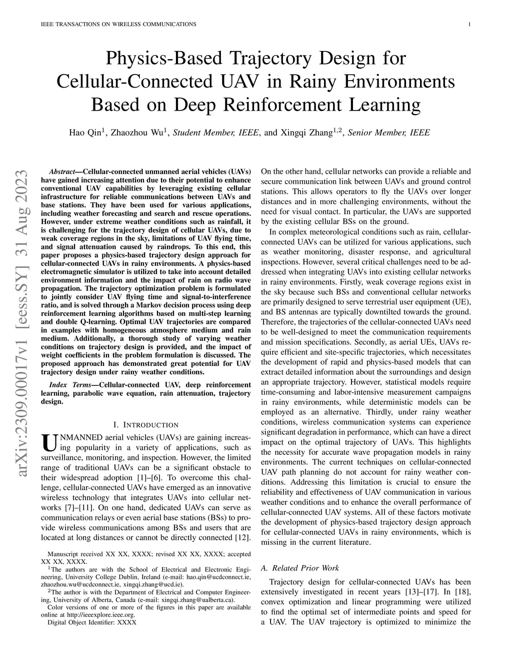 Physics-Based Trajectory Design for Cellular-Connected UAV in Rainy