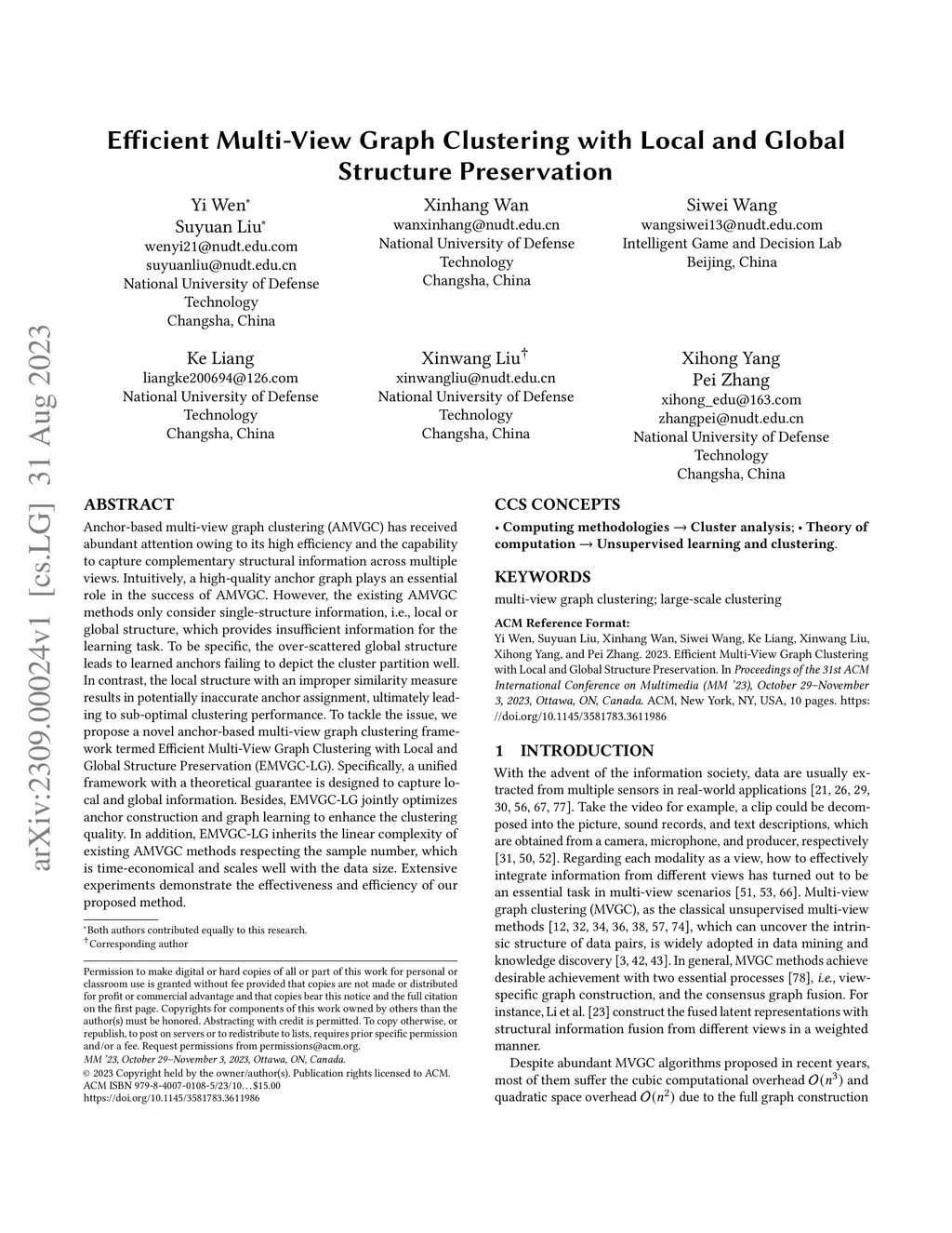 Efficient Multi-View Graph Clustering with Local and Global Structure