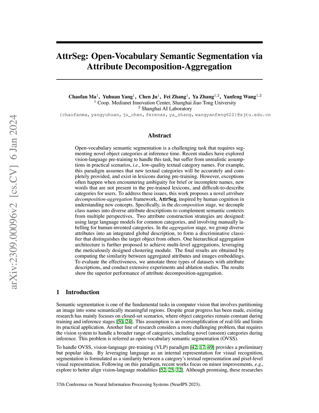 AttrSeg: Open-Vocabulary Semantic Segmentation via Attribute