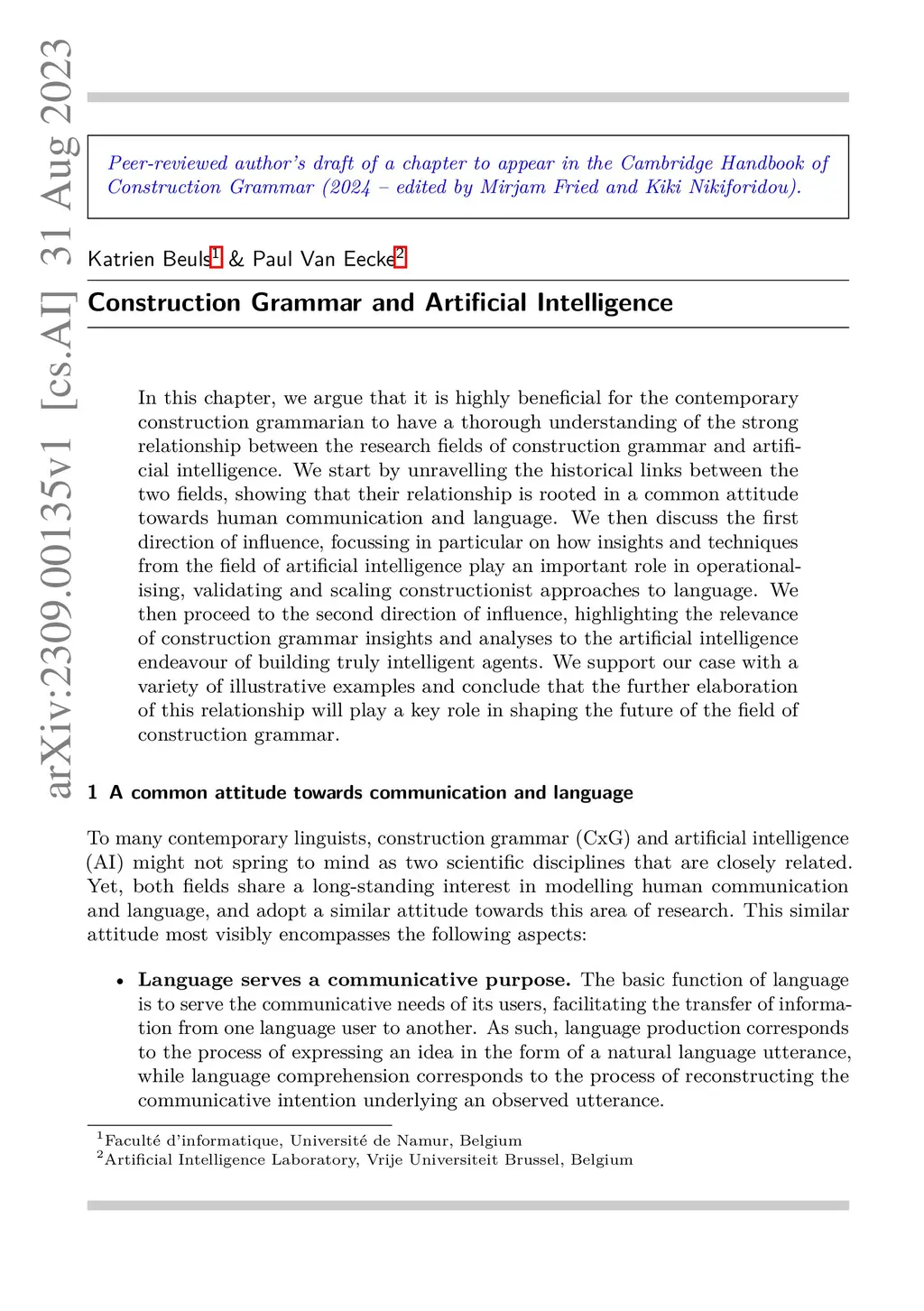 Construction Grammar and Artificial Intelligence