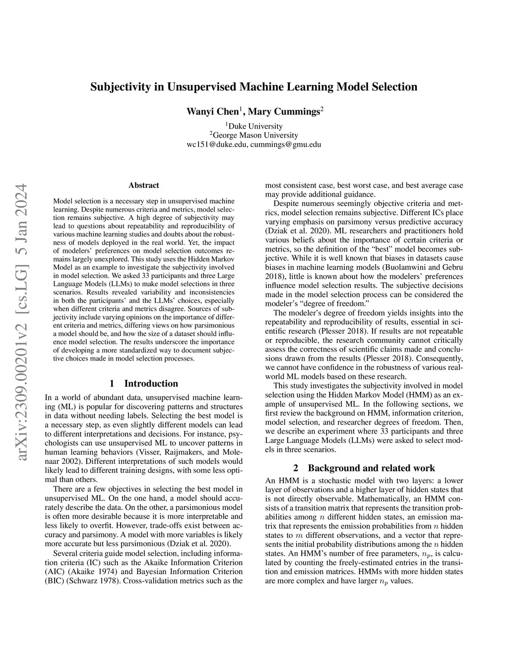 Model selection is a necessary step in unsupervised machine learning. Despite numerous criteria and metrics, model selection remains subjective. A high degree of subjectivity may lead to questions about repeatability and reproducibility of various machine learning studies and doubts about the robustness of models deployed in the real world. Yet, the impact of modelers' preferences on model selection outcomes remains largely unexplored. This study uses the Hidden Markov Model as an example to investigate the subjectivity involved in model selection. We asked 33 participants and three Large Language Models (LLMs) to make model selections in three scenarios. Results revealed variability and inconsistencies in both the participants' and the LLMs' choices, especially when different criteria and metrics disagree. Sources of subjectivity include varying opinions on the importance of different criteria and metrics, differing views on how parsimonious a model should be, and how the size of a dataset should influence model selection. The results underscore the importance of developing a more standardized way to document subjective choices made in model selection processes.