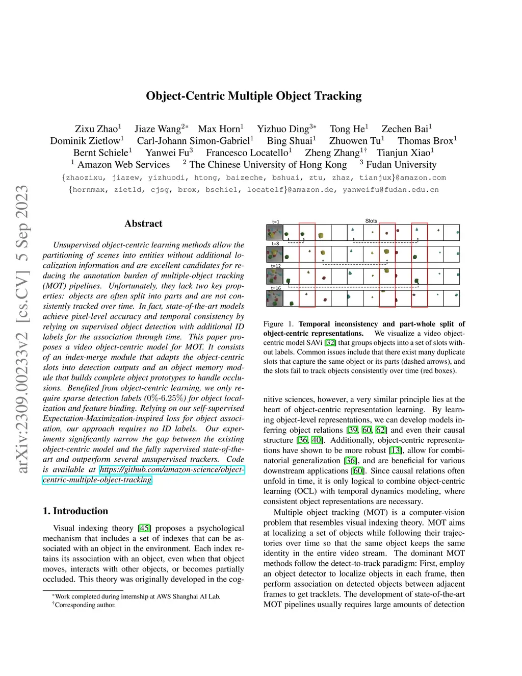 Object-Centric Multiple Object Tracking
