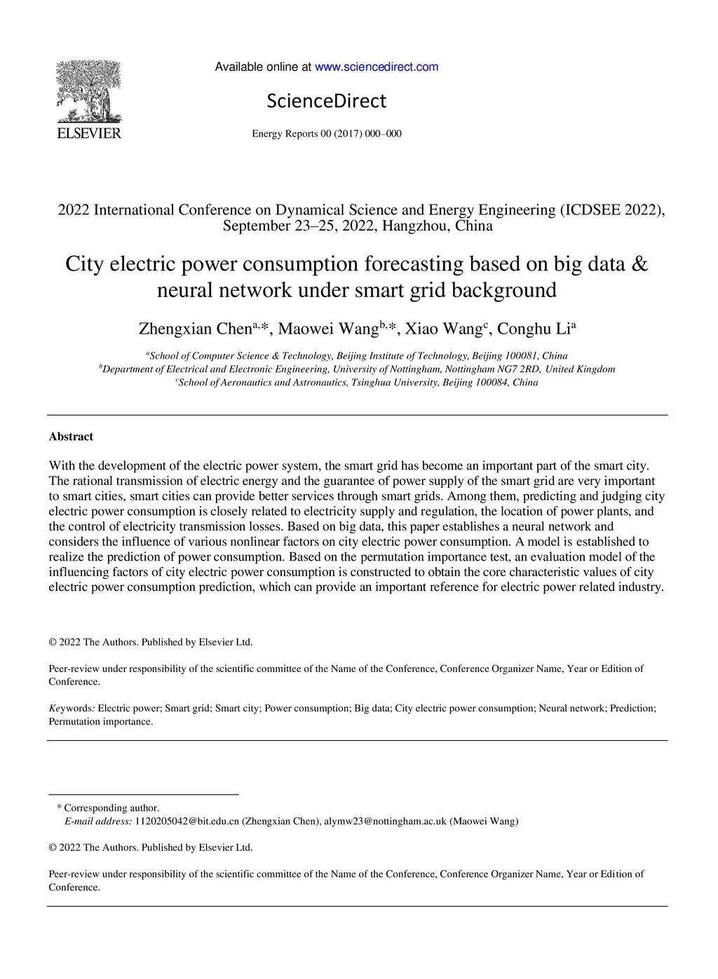 City electric power consumption forecasting based on big data & neural