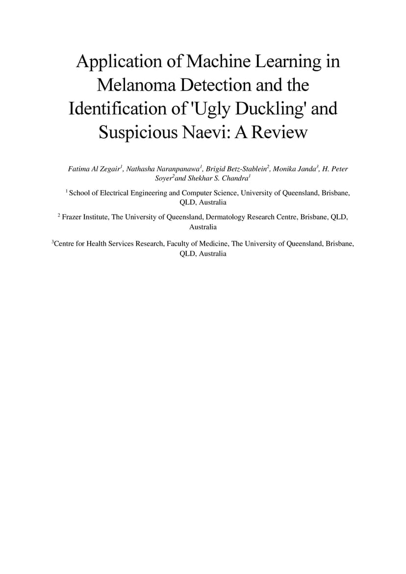 Application of Machine Learning in Melanoma Detection and the Identification of Úgly Duckling' and Suspicious Naevi: A Review