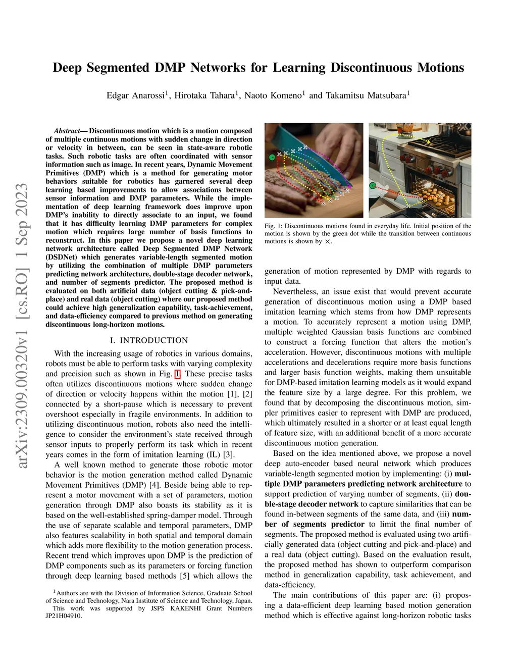 Deep Segmented DMP Networks for Learning Discontinuous Motions