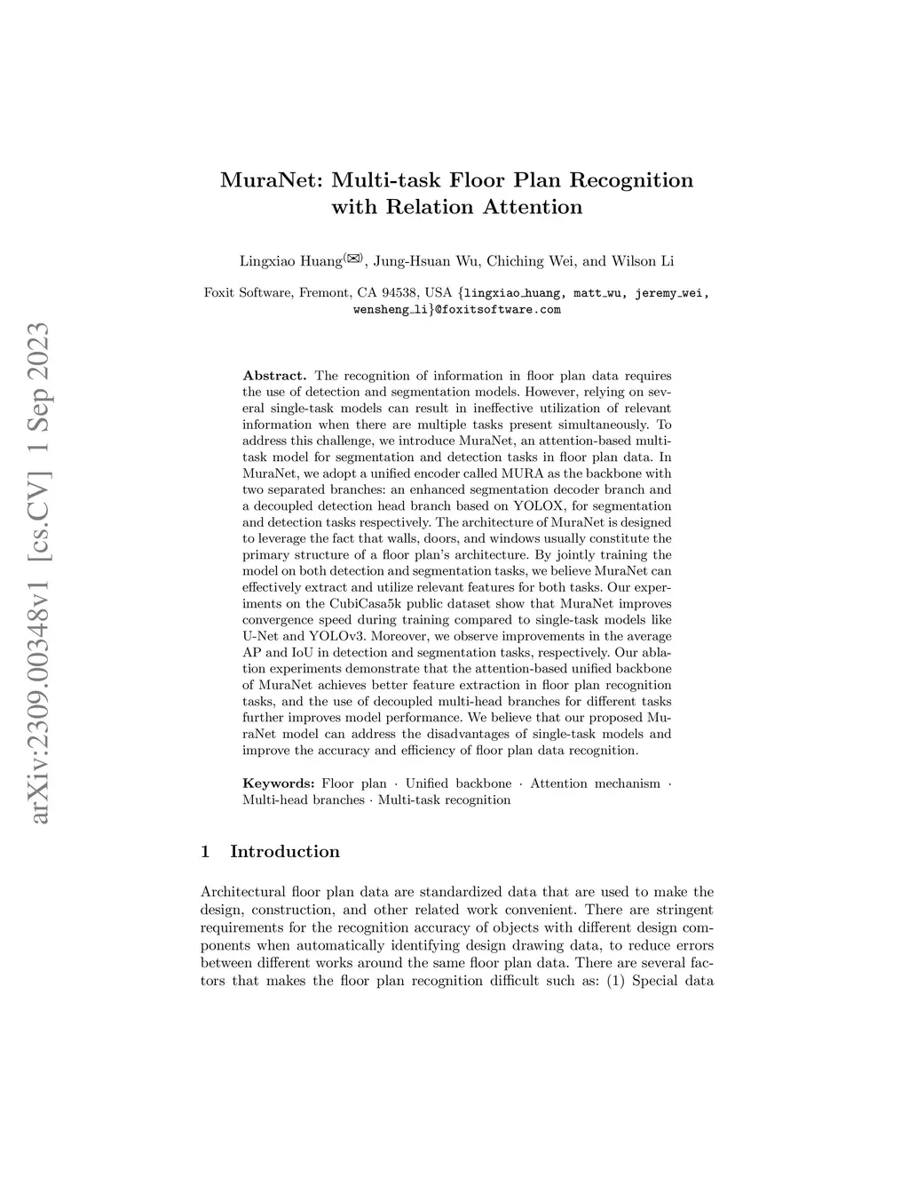 MuraNet: Multi-task Floor Plan Recognition with Relation Attention