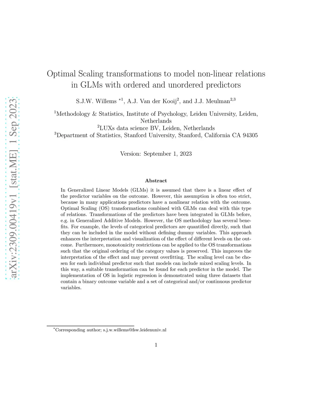 Optimal Scaling transformations to model non-linear relations in GLMs