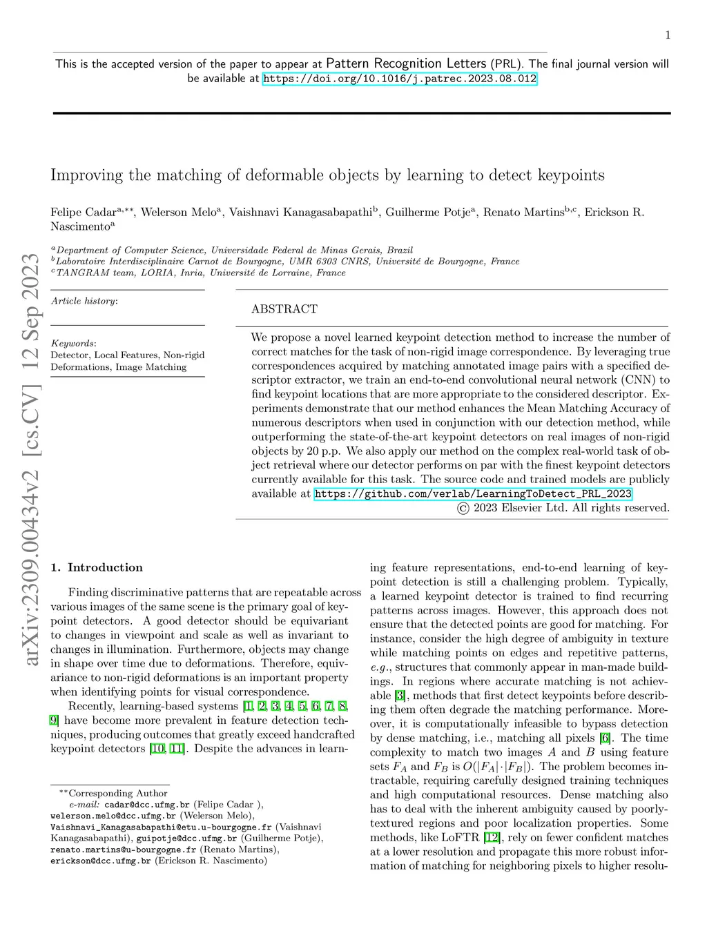 Improving the matching of deformable objects by learning to detect
