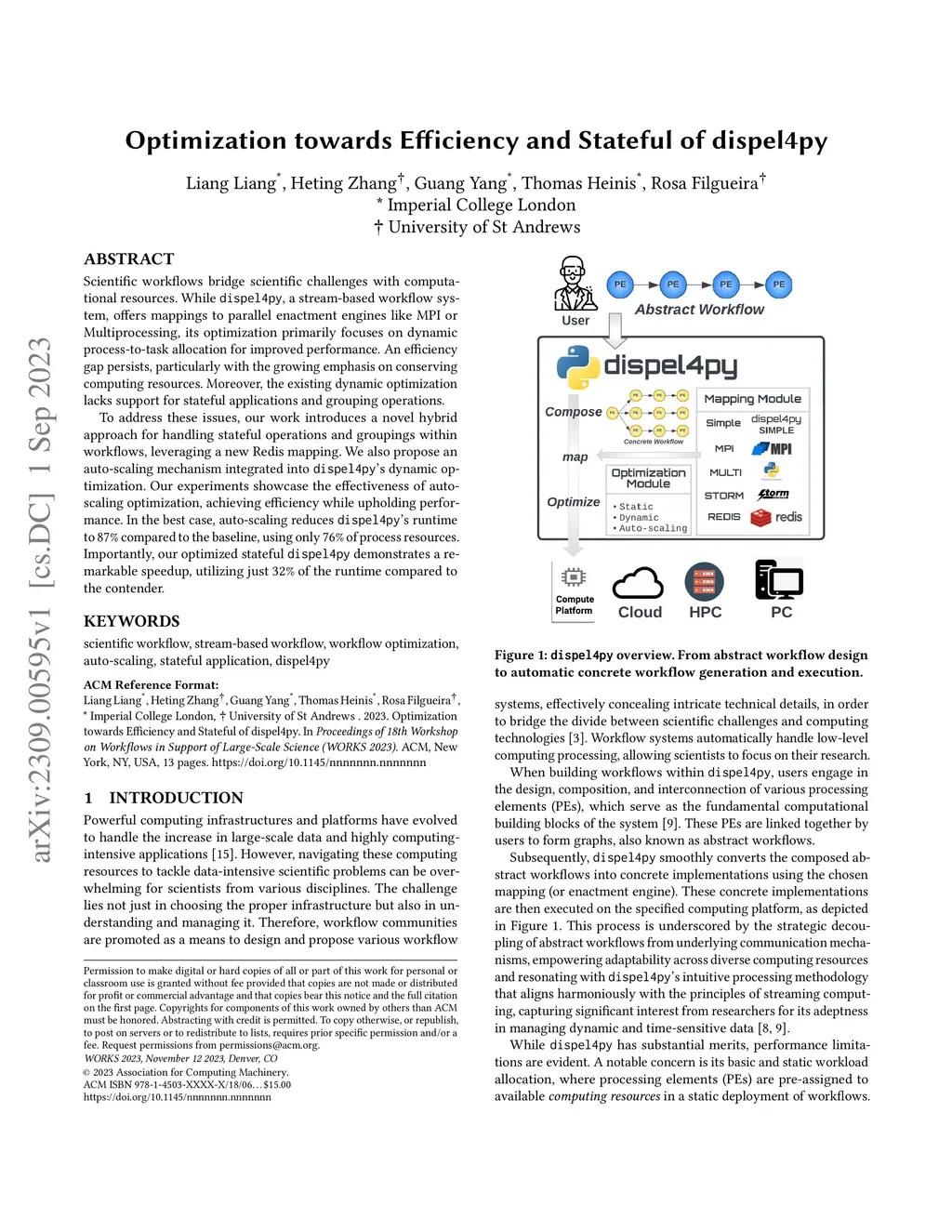 Scientific workflows bridge scientific challenges with computational resources. While dispel4py, a stream-based workflow system, offers mappings to parallel enactment engines like MPI or Multiprocessing, its optimization primarily focuses on dynamic process-to-task allocation for improved performance. An efficiency gap persists, particularly with the growing emphasis on conserving computing resources. Moreover, the existing dynamic optimization lacks support for stateful applications and grouping operations. To address these issues, our work introduces a novel hybrid approach for handling stateful operations and groupings within workflows, leveraging a new Redis mapping. We also propose an auto-scaling mechanism integrated into dispel4py's dynamic optimization. Our experiments showcase the effectiveness of auto-scaling optimization, achieving efficiency while upholding performance. In the best case, auto-scaling reduces dispel4py's runtime to 87% compared to the baseline, using only 76% of process resources. Importantly, our optimized stateful dispel4py demonstrates a remarkable speedup, utilizing just 32% of the runtime compared to the contender.