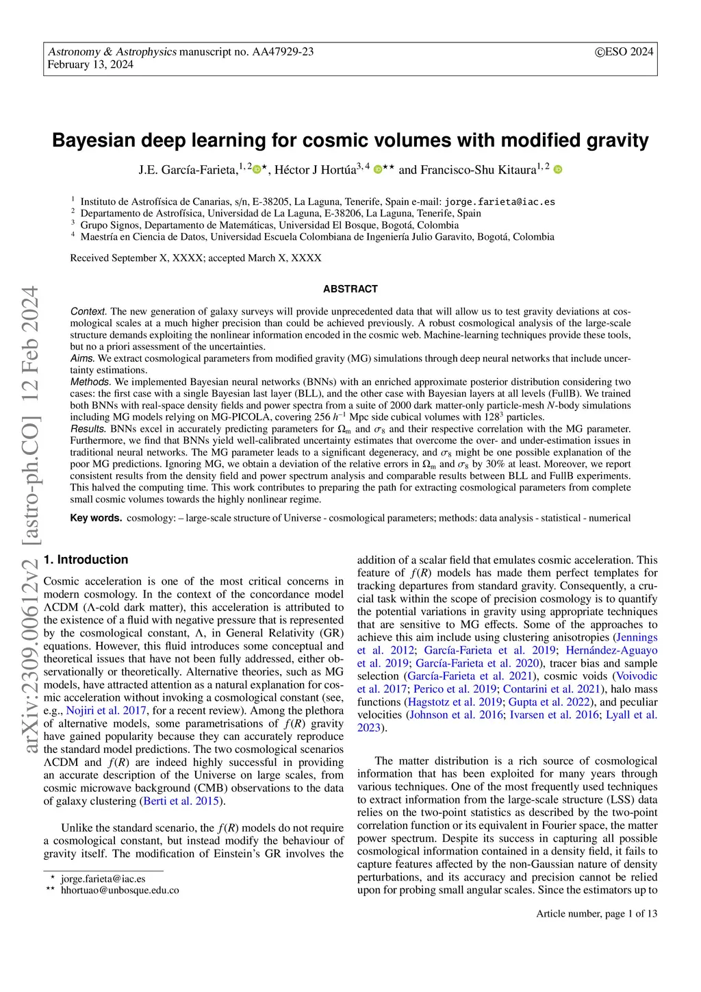 Bayesian deep learning for cosmic volumes with modified gravity