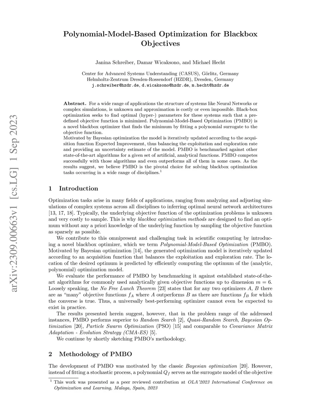 For a wide range of applications the structure of systems like Neural Networks or complex simulations, is unknown and approximation is costly or even impossible. Black-box optimization seeks to find optimal (hyper-) parameters for these systems such that a pre-defined objective function is minimized. Polynomial-Model-Based Optimization (PMBO) is a novel blackbox optimizer that finds the minimum by fitting a polynomial surrogate to the objective function. Motivated by Bayesian optimization the model is iteratively updated according to the acquisition function Expected Improvement, thus balancing the exploitation and exploration rate and providing an uncertainty estimate of the model. PMBO is benchmarked against other state-of-the-art algorithms for a given set of artificial, analytical functions. PMBO competes successfully with those algorithms and even outperforms all of them in some cases. As the results suggest, we believe PMBO is the pivotal choice for solving blackbox optimization tasks occurring in a wide range of disciplines.