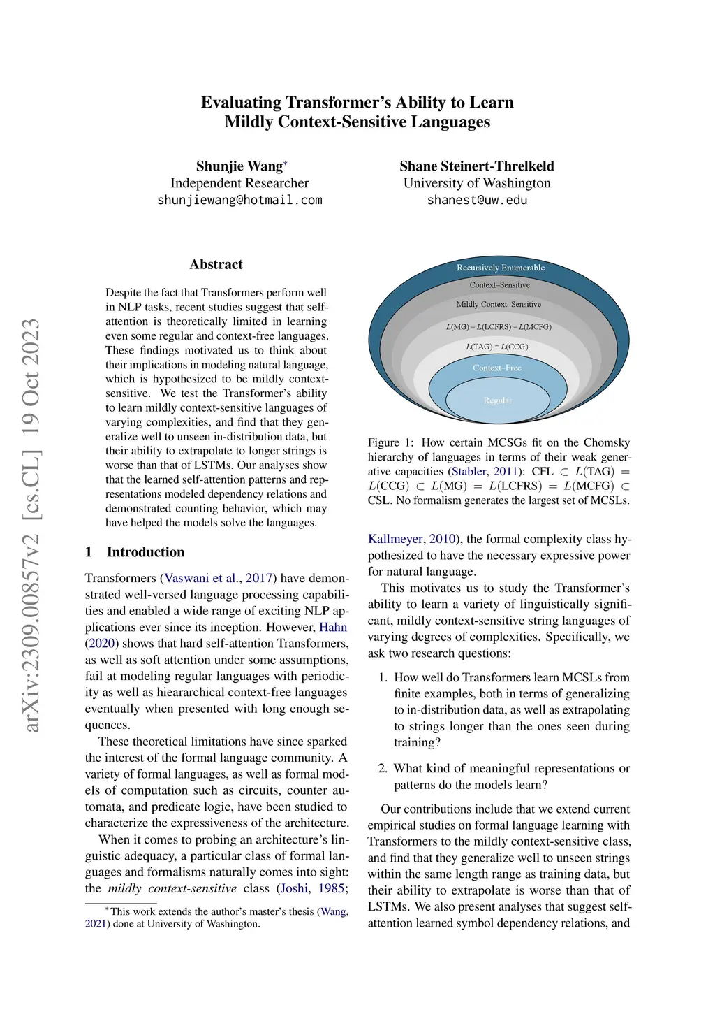 Despite the fact that Transformers perform well in NLP tasks, recent studies suggest that self-attention is theoretically limited in learning even some regular and context-free languages. These findings motivated us to think about their implications in modeling natural language, which is hypothesized to be mildly context-sensitive. We test the Transformer's ability to learn mildly context-sensitive languages of varying complexities, and find that they generalize well to unseen in-distribution data, but their ability to extrapolate to longer strings is worse than that of LSTMs. Our analyses show that the learned self-attention patterns and representations modeled dependency relations and demonstrated counting behavior, which may have helped the models solve the languages.