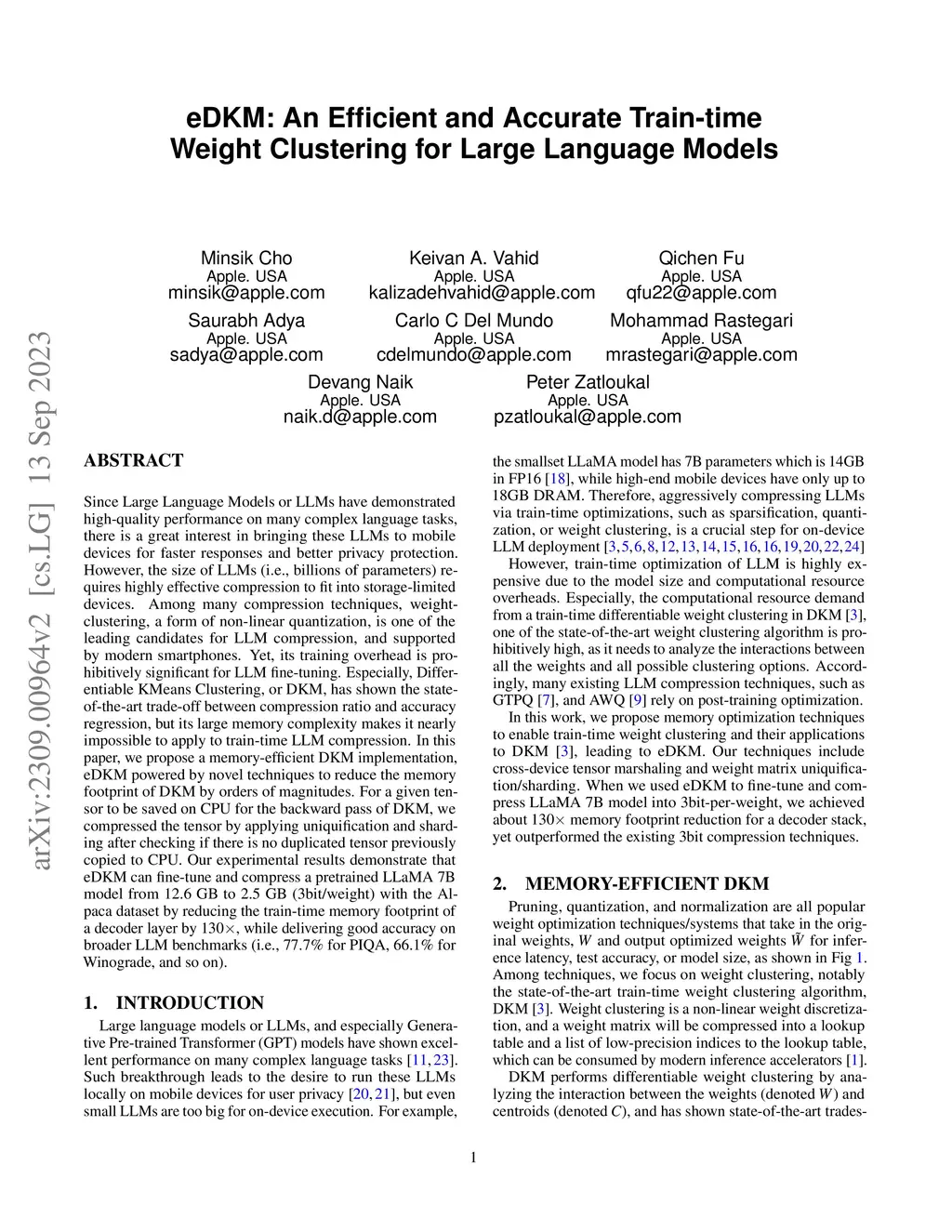 eDKM: An Efficient and Accurate Train-time Weight Clustering for Large
