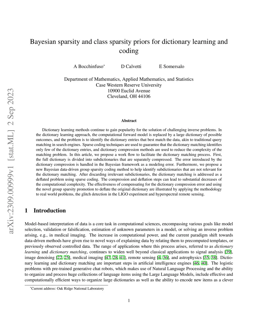 Dictionary learning methods continue to gain popularity for the solution of challenging inverse problems. In the dictionary learning approach, the computational forward model is replaced by a large dictionary of possible outcomes, and the problem is to identify the dictionary entries that best match the data, akin to traditional query matching in search engines. Sparse coding techniques are used to guarantee that the dictionary matching identifies only few of the dictionary entries, and dictionary compression methods are used to reduce the complexity of the matching problem. In this article, we propose a work flow to facilitate the dictionary matching process. First, the full dictionary is divided into subdictionaries that are separately compressed. The error introduced by the dictionary compression is handled in the Bayesian framework as a modeling error. Furthermore, we propose a new Bayesian data-driven group sparsity coding method to help identify subdictionaries that are not relevant for the dictionary matching. After discarding irrelevant subdictionaries, the dictionary matching is addressed as a deflated problem using sparse coding. The compression and deflation steps can lead to substantial decreases of the computational complexity. The effectiveness of compensating for the dictionary compression error and using the novel group sparsity promotion to deflate the original dictionary are illustrated by applying the methodology to real world problems, the glitch detection in the LIGO experiment and hyperspectral remote sensing.
