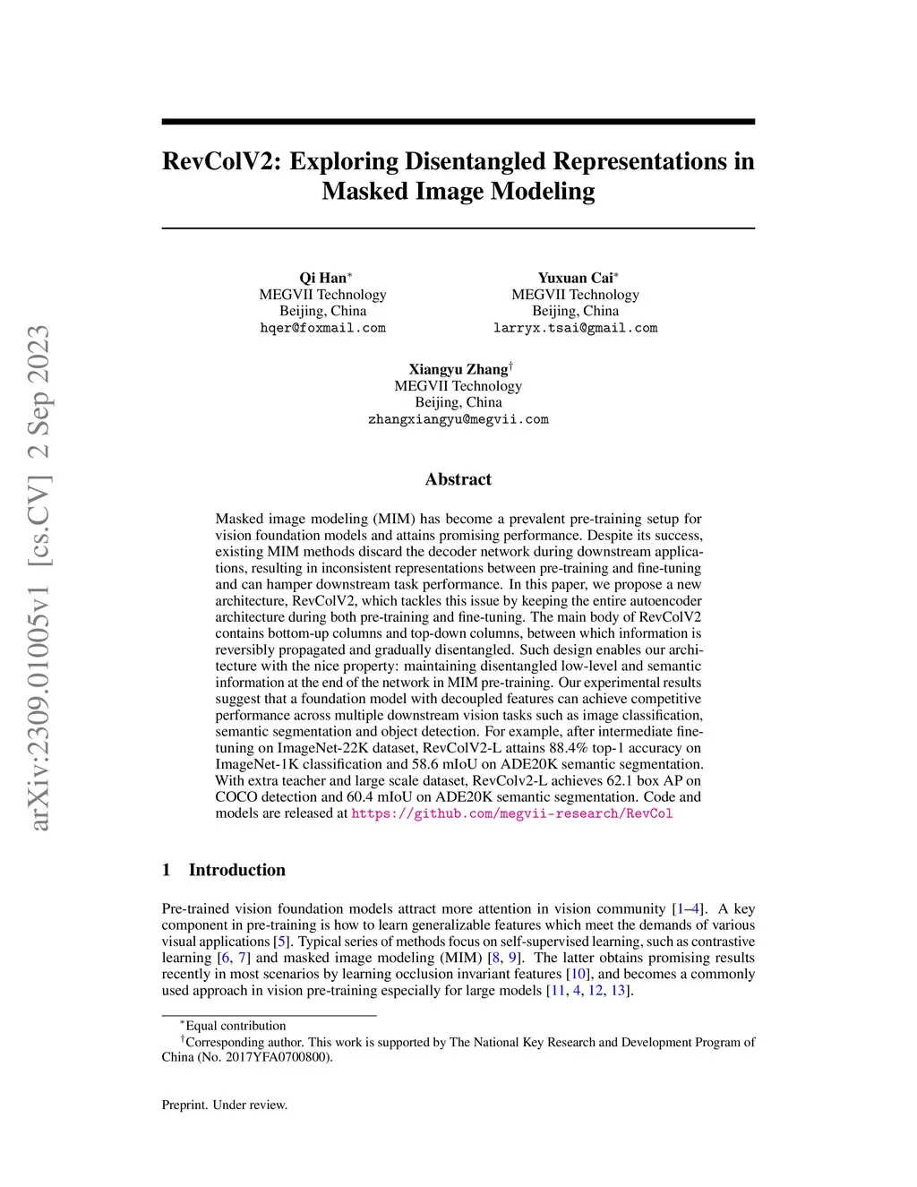 RevColV2: Exploring Disentangled Representations in Masked Image