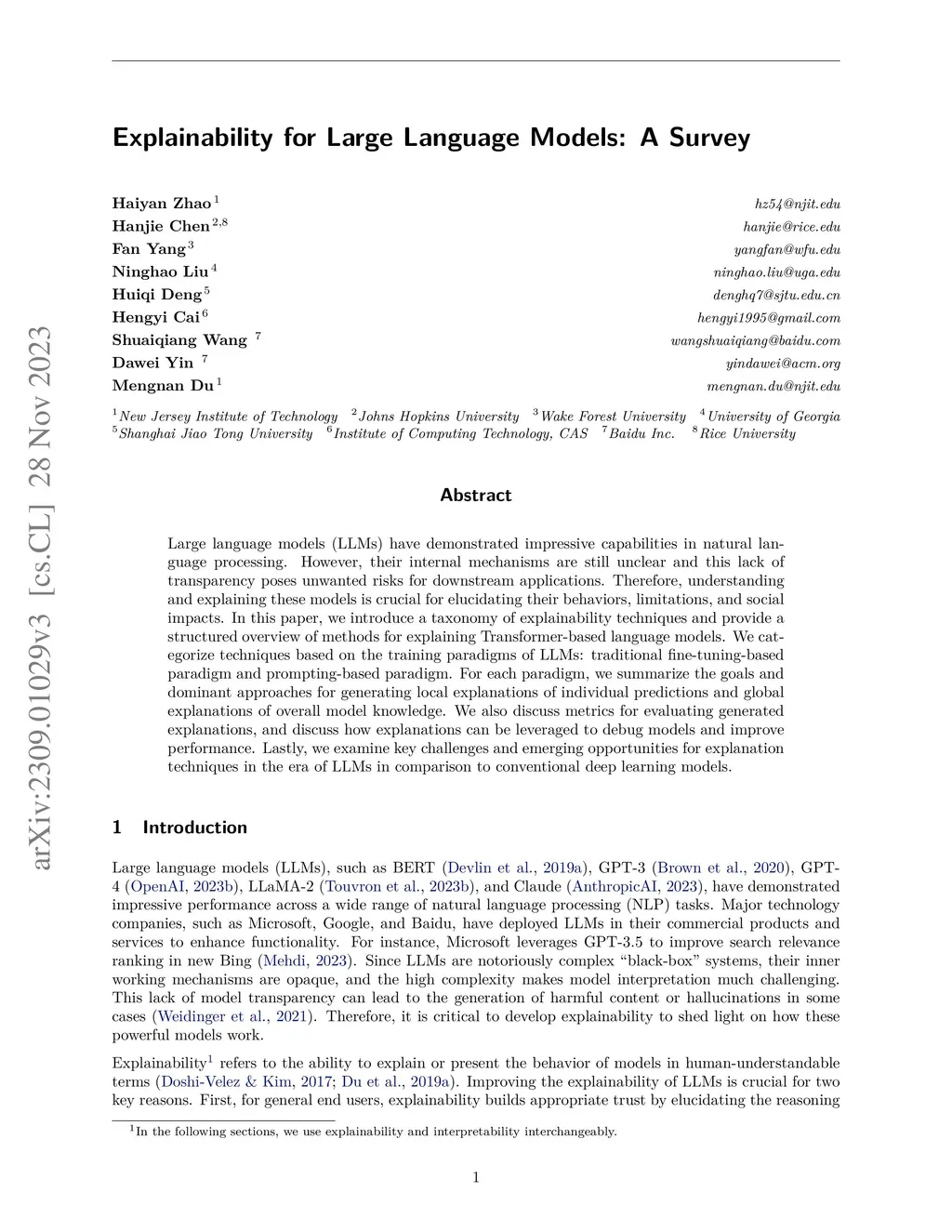 Large language models (LLMs) have demonstrated impressive capabilities in natural language processing. However, their internal mechanisms are still unclear and this lack of transparency poses unwanted risks for downstream applications. Therefore, understanding and explaining these models is crucial for elucidating their behaviors, limitations, and social impacts. In this paper, we introduce a taxonomy of explainability techniques and provide a structured overview of methods for explaining Transformer-based language models. We categorize techniques based on the training paradigms of LLMs: traditional fine-tuning-based paradigm and prompting-based paradigm. For each paradigm, we summarize the goals and dominant approaches for generating local explanations of individual predictions and global explanations of overall model knowledge. We also discuss metrics for evaluating generated explanations, and discuss how explanations can be leveraged to debug models and improve performance. Lastly, we examine key challenges and emerging opportunities for explanation techniques in the era of LLMs in comparison to conventional machine learning models.