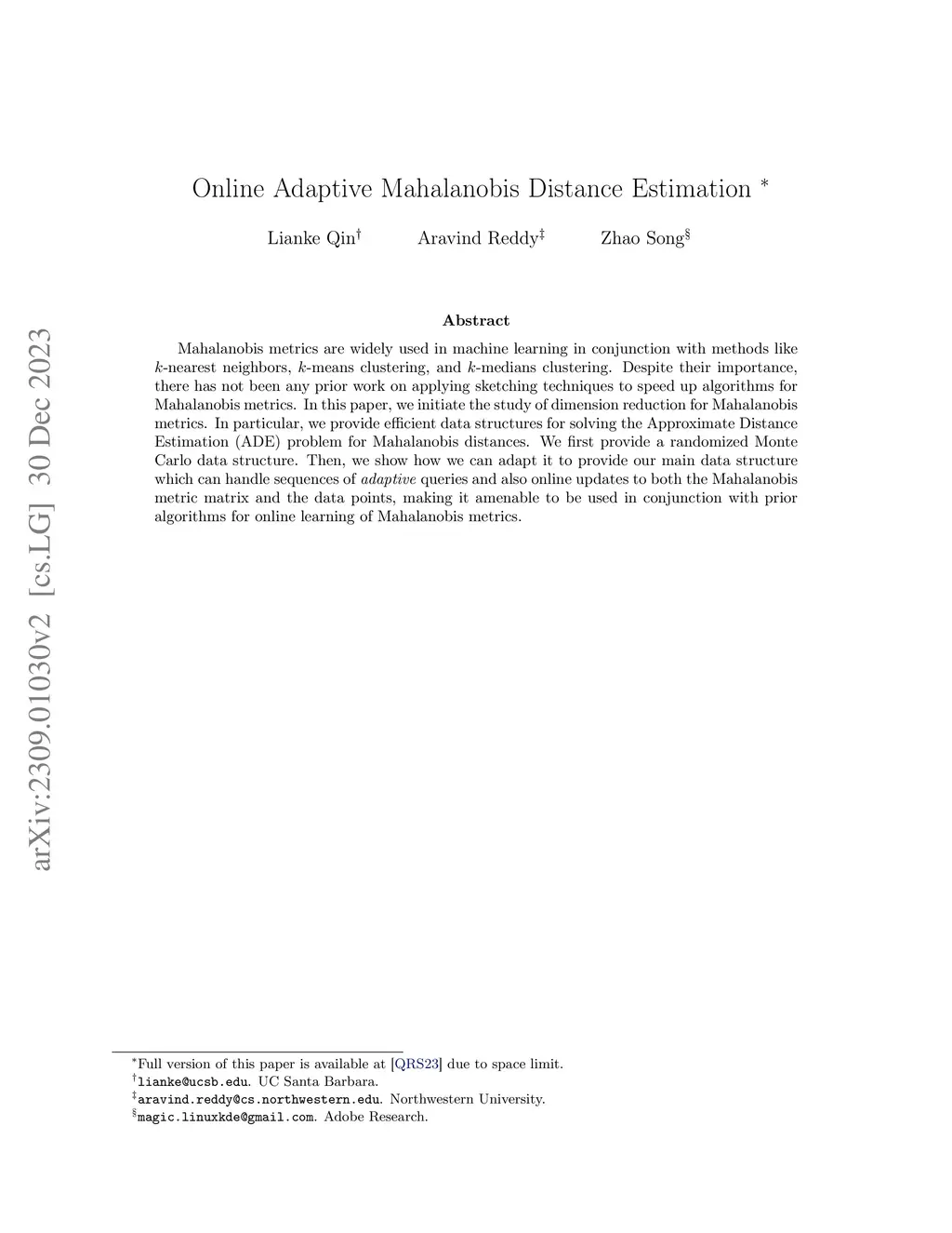 Online Adaptive Mahalanobis Distance Estimation
