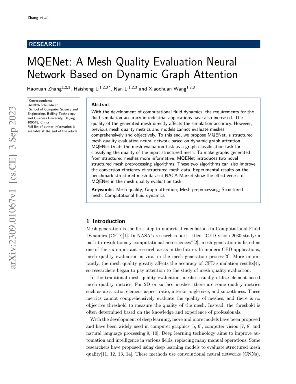 MQENet: A Mesh Quality Evaluation Neural Network Based on Dynamic Graph