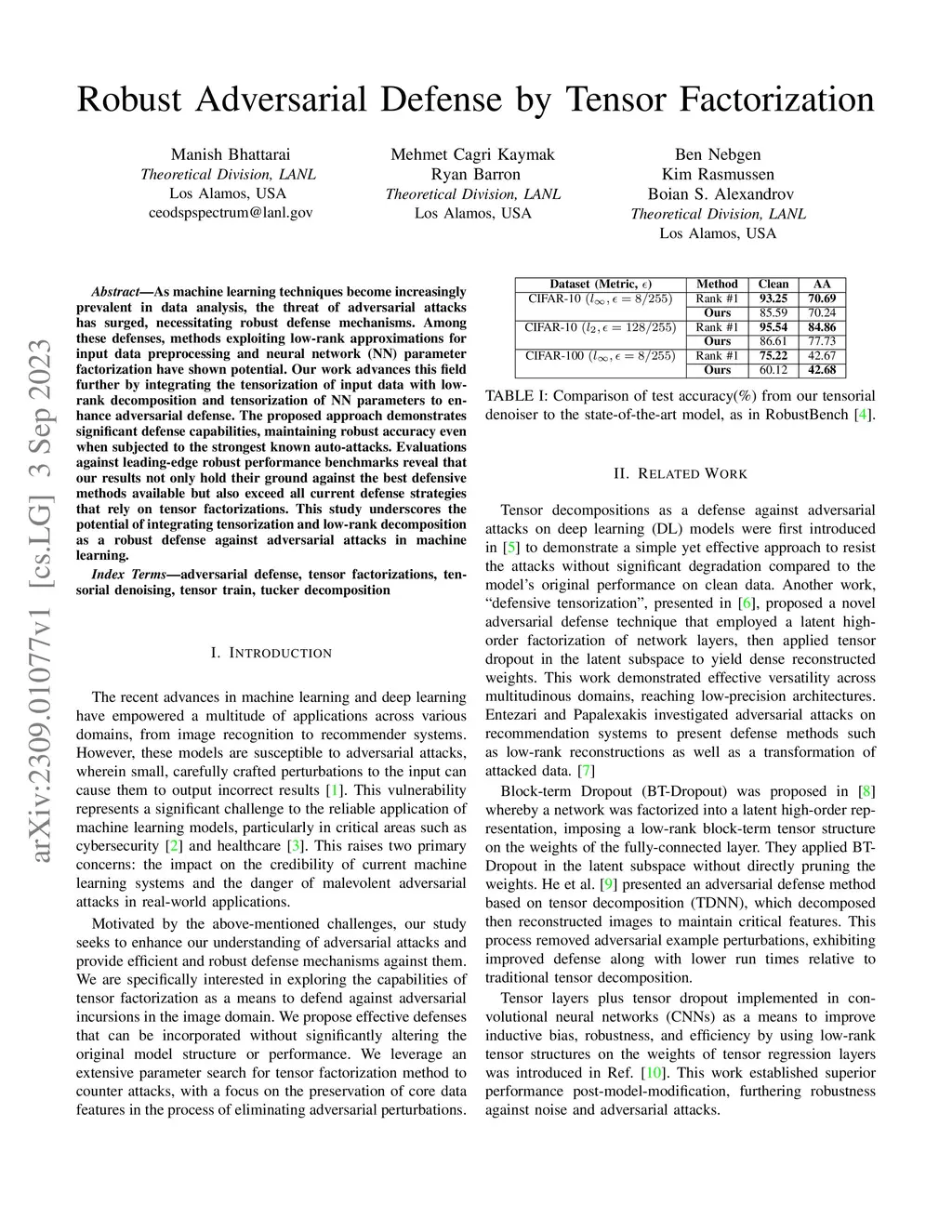 Robust Adversarial Defense by Tensor Factorization