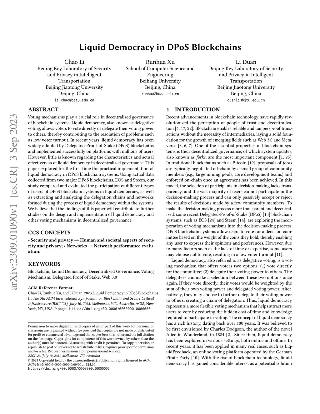 Voting mechanisms play a crucial role in decentralized governance of blockchain systems. Liquid democracy, also known as delegative voting, allows voters to vote directly or delegate their voting power to others, thereby contributing to the resolution of problems such as low voter turnout. In recent years, liquid democracy has been widely adopted by Delegated-Proof-of-Stake (DPoS) blockchains and implemented successfully on platforms with millions of users. However, little is known regarding the characteristics and actual effectiveness of liquid democracy in decentralized governance. This paper explored for the first time the practical implementation of liquid democracy in DPoS blockchain systems. Using actual data collected from two major DPoS blockchains, EOS and Steem, our study compared and evaluated the participation of different types of users of DPoS blockchain systems in liquid democracy, as well as extracting and analyzing the delegation chains and networks formed during the process of liquid democracy within the systems. We believe that the findings of this paper will contribute to further studies on the design and implementation of liquid democracy and other voting mechanisms in decentralized governance.