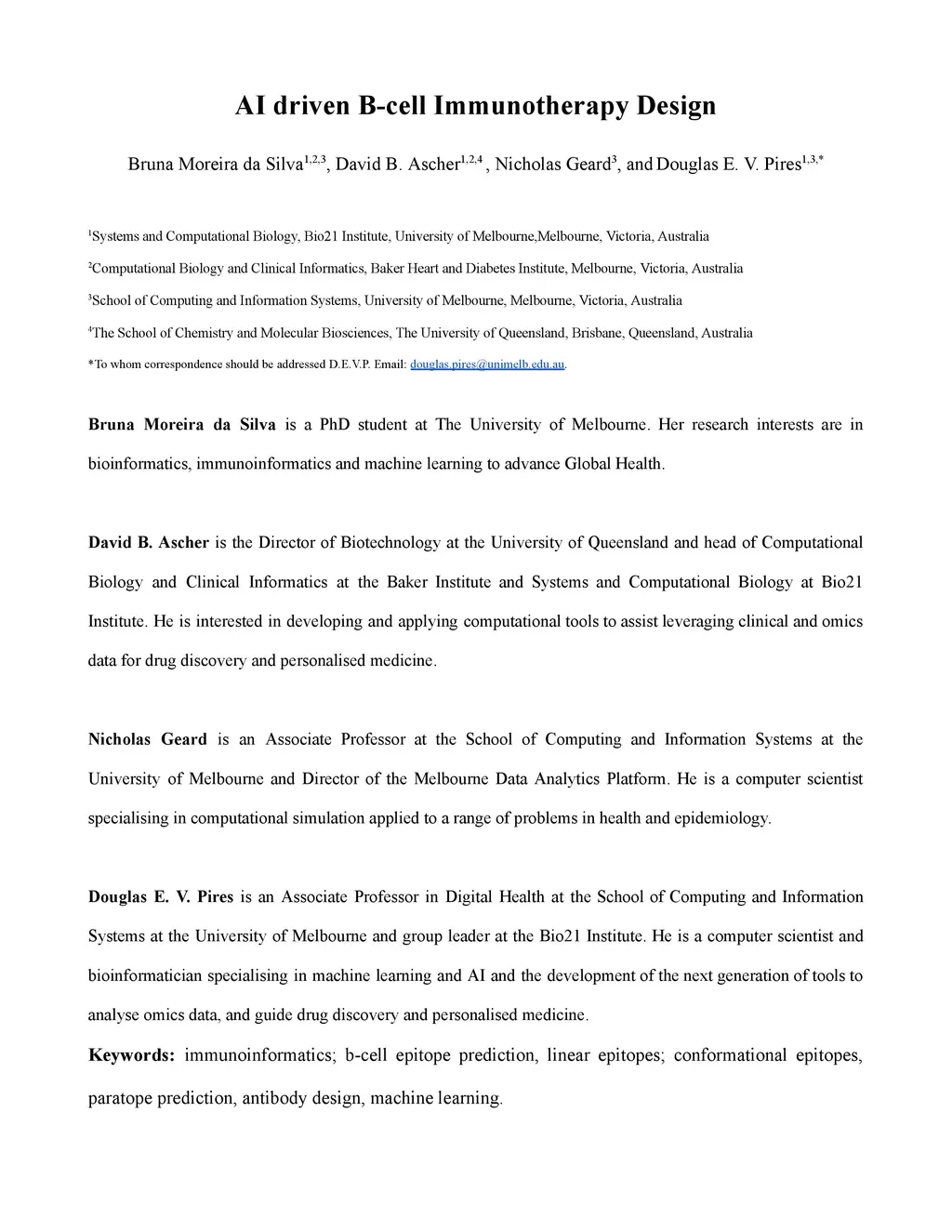 AI driven B-cell Immunotherapy Design