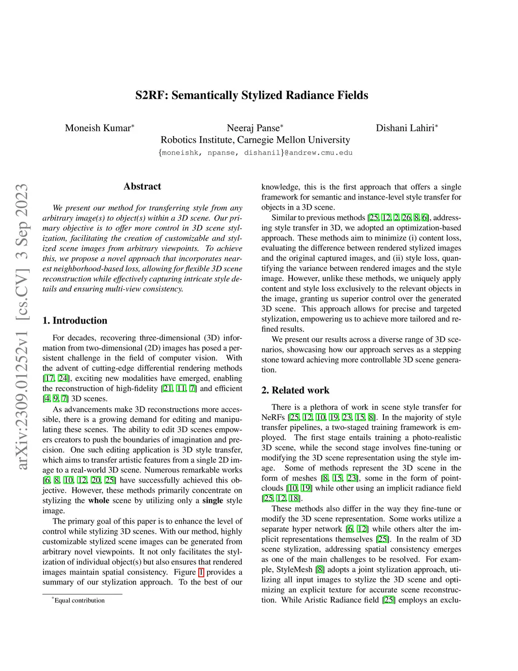 S2RF: Semantically Stylized Radiance Fields