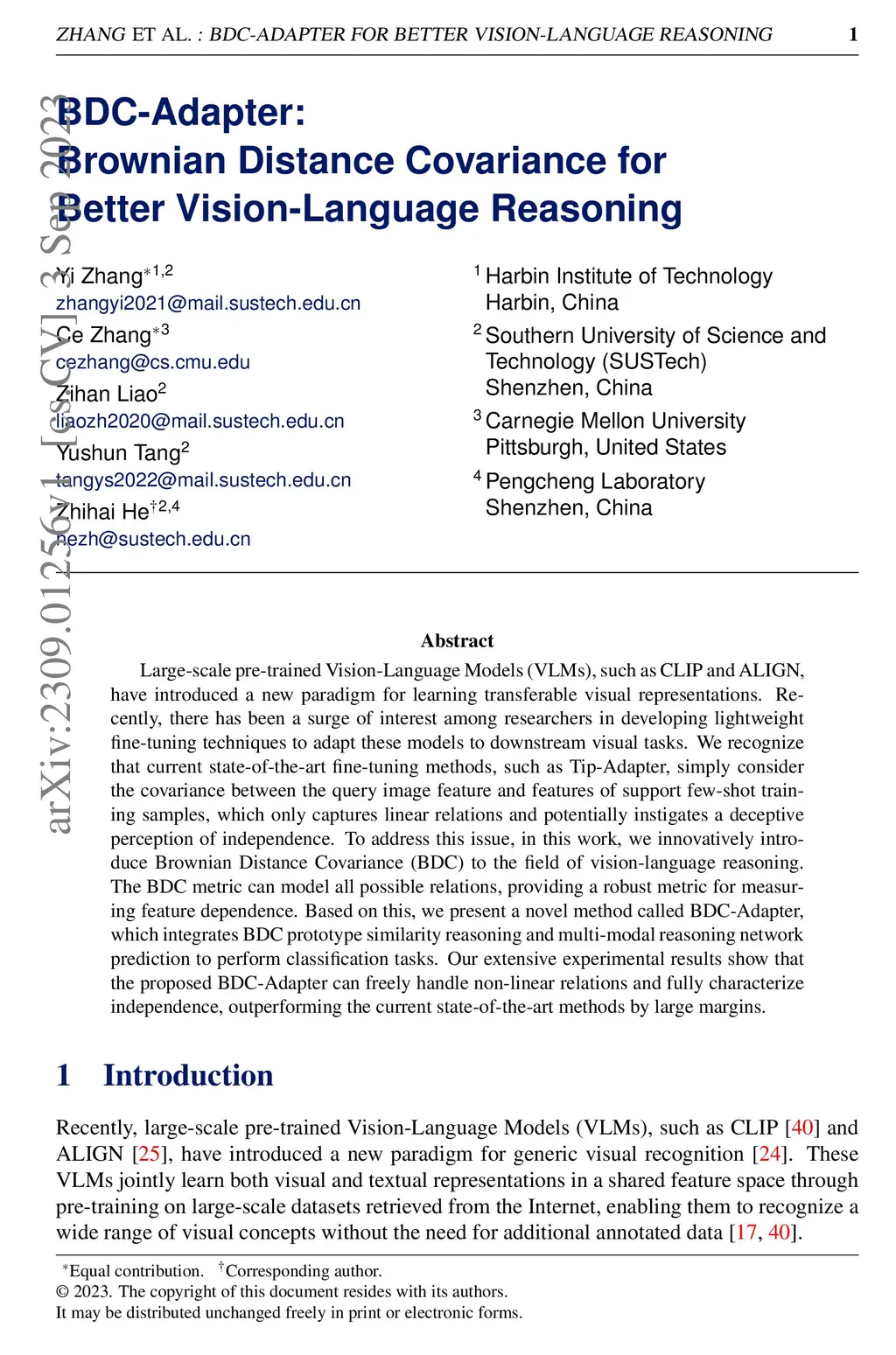BDC-Adapter: Brownian Distance Covariance for Better Vision-Language
