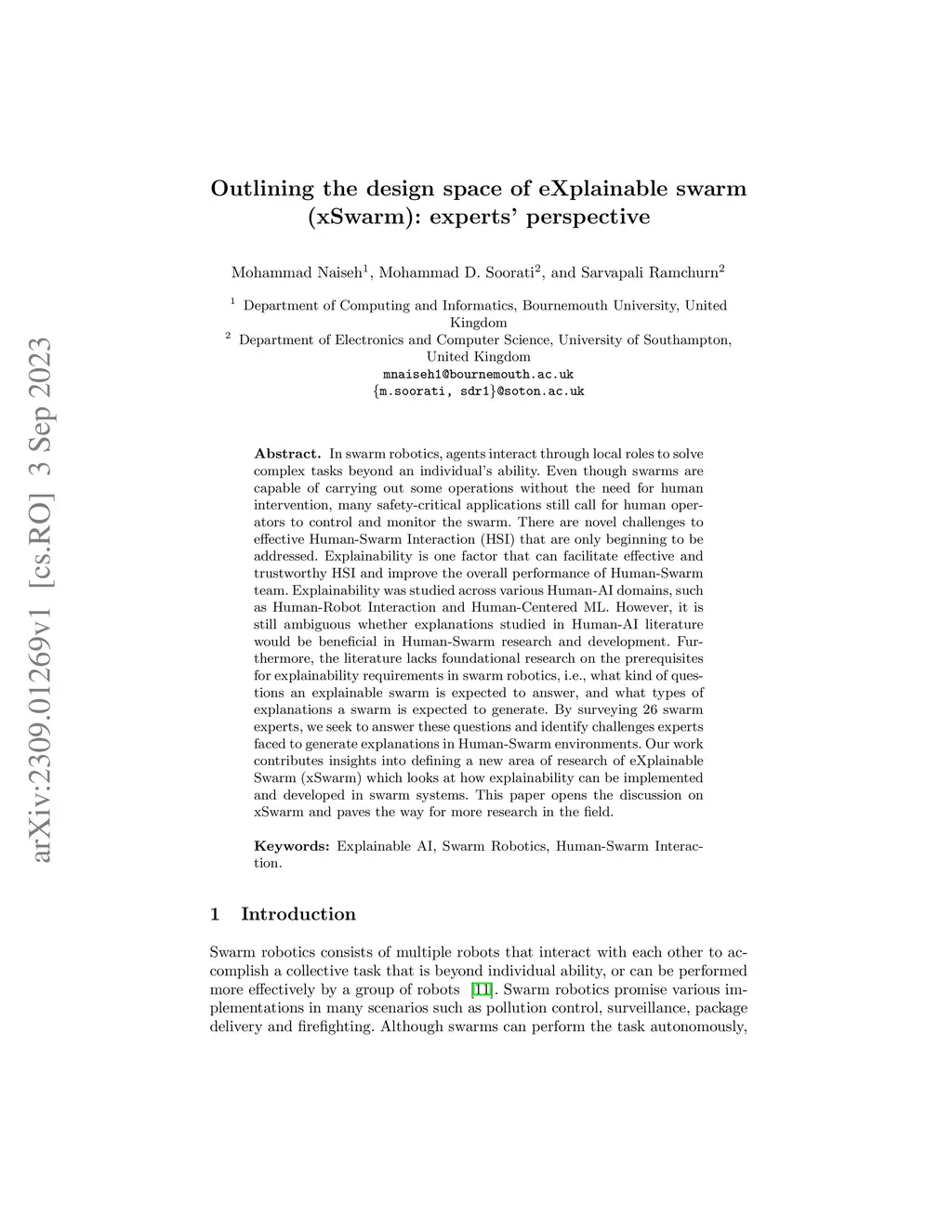 Outlining the design space of eXplainable swarm (xSwarm): experts