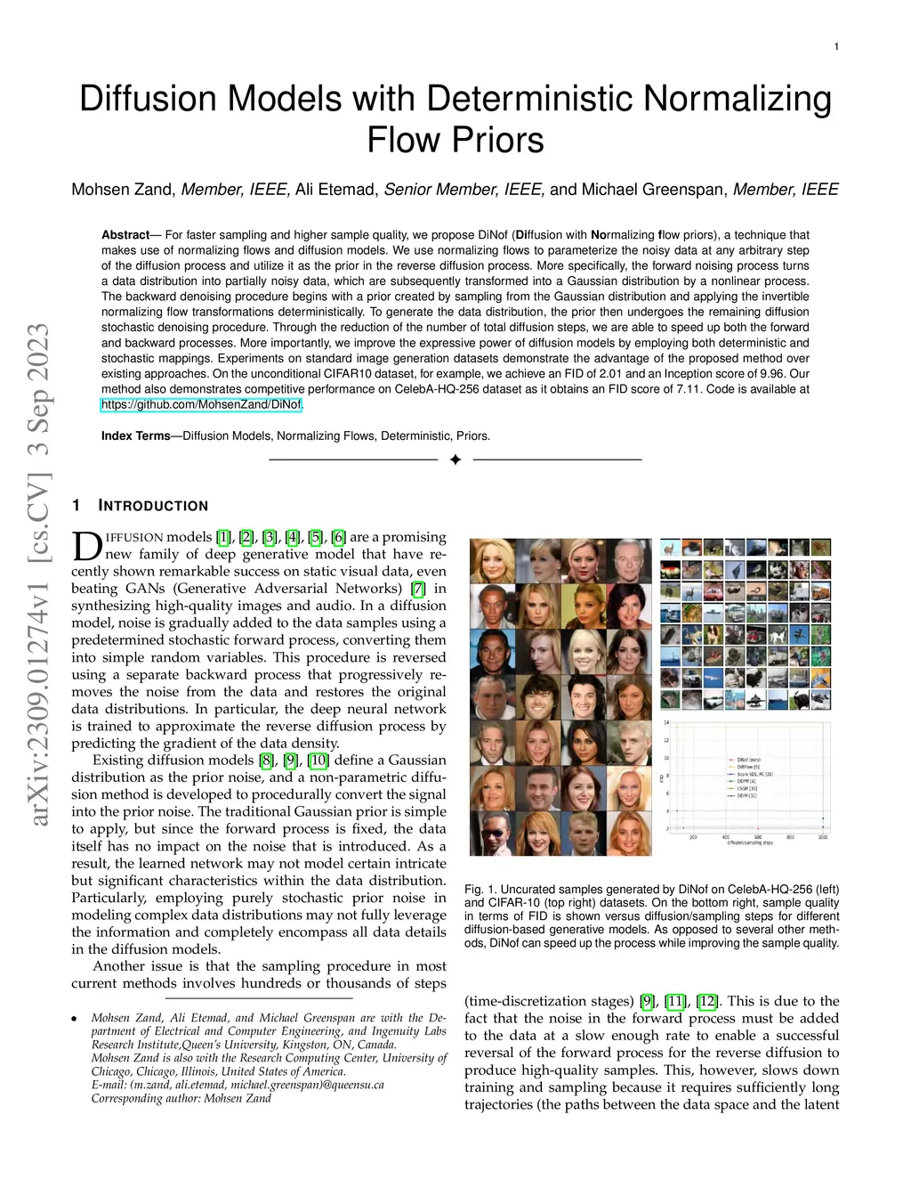 For faster sampling and higher sample quality, we propose DiNof (ffusion with rmalizing low priors), a technique that makes use of normalizing flows and diffusion models. We use normalizing flows to parameterize the noisy data at any arbitrary step of the diffusion process and utilize it as the prior in the reverse diffusion process. More specifically, the forward noising process turns a data distribution into partially noisy data, which are subsequently transformed into a Gaussian distribution by a nonlinear process. The backward denoising procedure begins with a prior created by sampling from the Gaussian distribution and applying the invertible normalizing flow transformations deterministically. To generate the data distribution, the prior then undergoes the remaining diffusion stochastic denoising procedure. Through the reduction of the number of total diffusion steps, we are able to speed up both the forward and backward processes. More importantly, we improve the expressive power of diffusion models by employing both deterministic and stochastic mappings. Experiments on standard image generation datasets demonstrate the advantage of the proposed method over existing approaches. On the unconditional CIFAR10 dataset, for example, we achieve an FID of 2.01 and an Inception score of 9.96. Our method also demonstrates competitive performance on CelebA-HQ-256 dataset as it obtains an FID score of 7.11. Code is available atthis https URL.