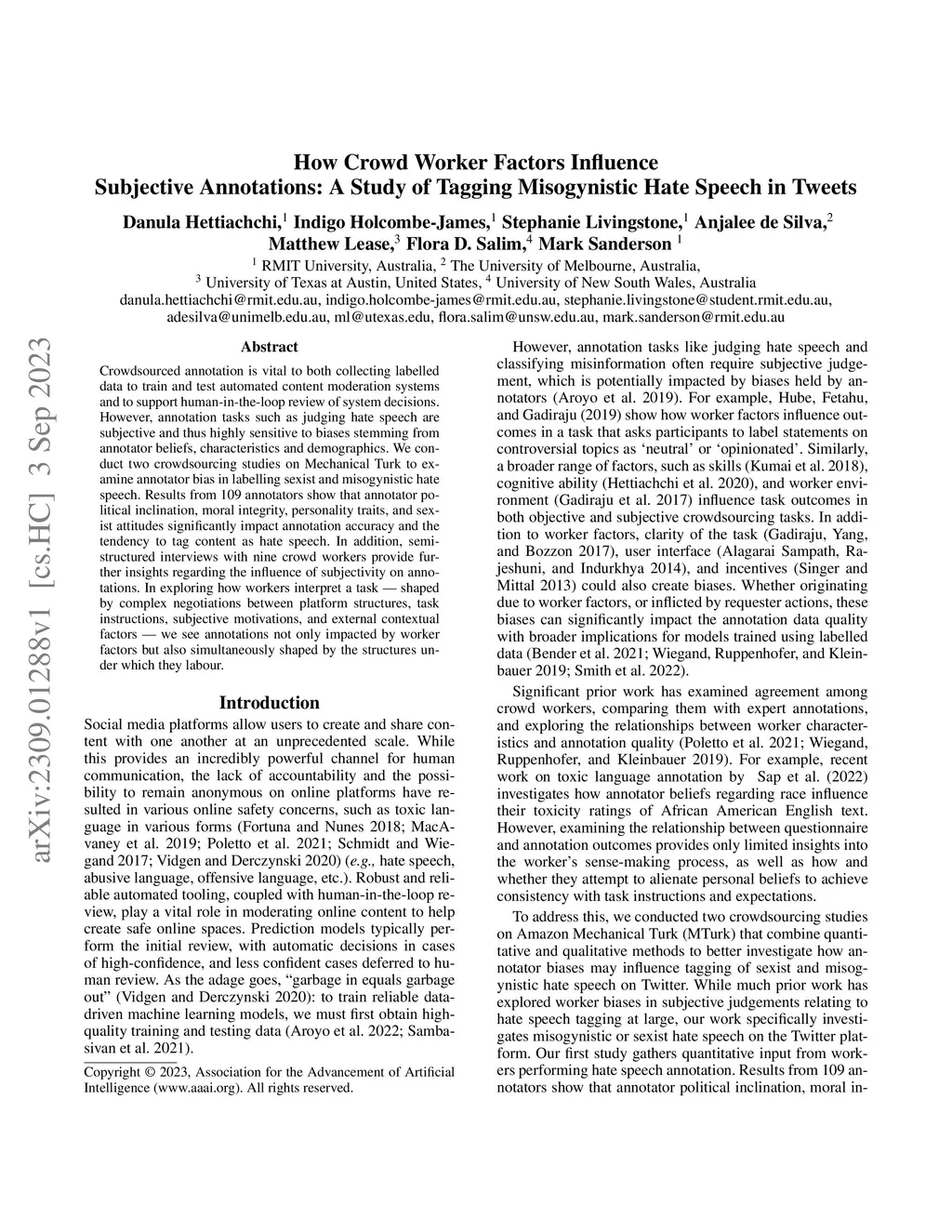 Crowdsourced annotation is vital to both collecting labelled data to train and test automated content moderation systems and to support human-in-the-loop review of system decisions. However, annotation tasks such as judging hate speech are subjective and thus highly sensitive to biases stemming from annotator beliefs, characteristics and demographics. We conduct two crowdsourcing studies on Mechanical Turk to examine annotator bias in labelling sexist and misogynistic hate speech. Results from 109 annotators show that annotator political inclination, moral integrity, personality traits, and sexist attitudes significantly impact annotation accuracy and the tendency to tag content as hate speech. In addition, semi-structured interviews with nine crowd workers provide further insights regarding the influence of subjectivity on annotations. In exploring how workers interpret a task - shaped by complex negotiations between platform structures, task instructions, subjective motivations, and external contextual factors - we see annotations not only impacted by worker factors but also simultaneously shaped by the structures under which they labour.
