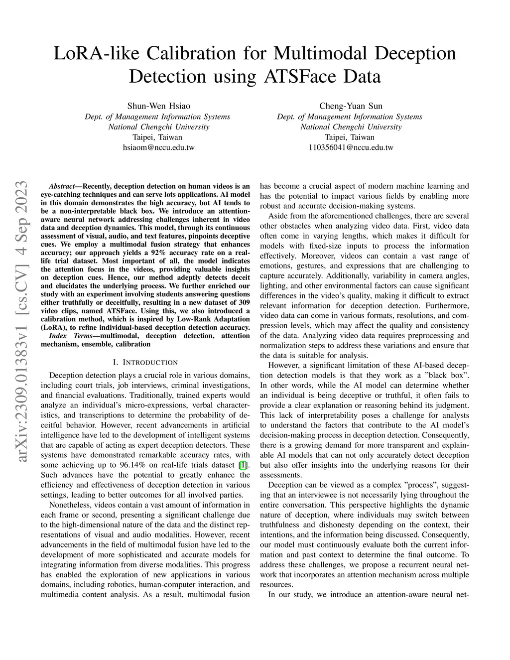 LoRA-like Calibration for Multimodal Deception Detection using ATSFace