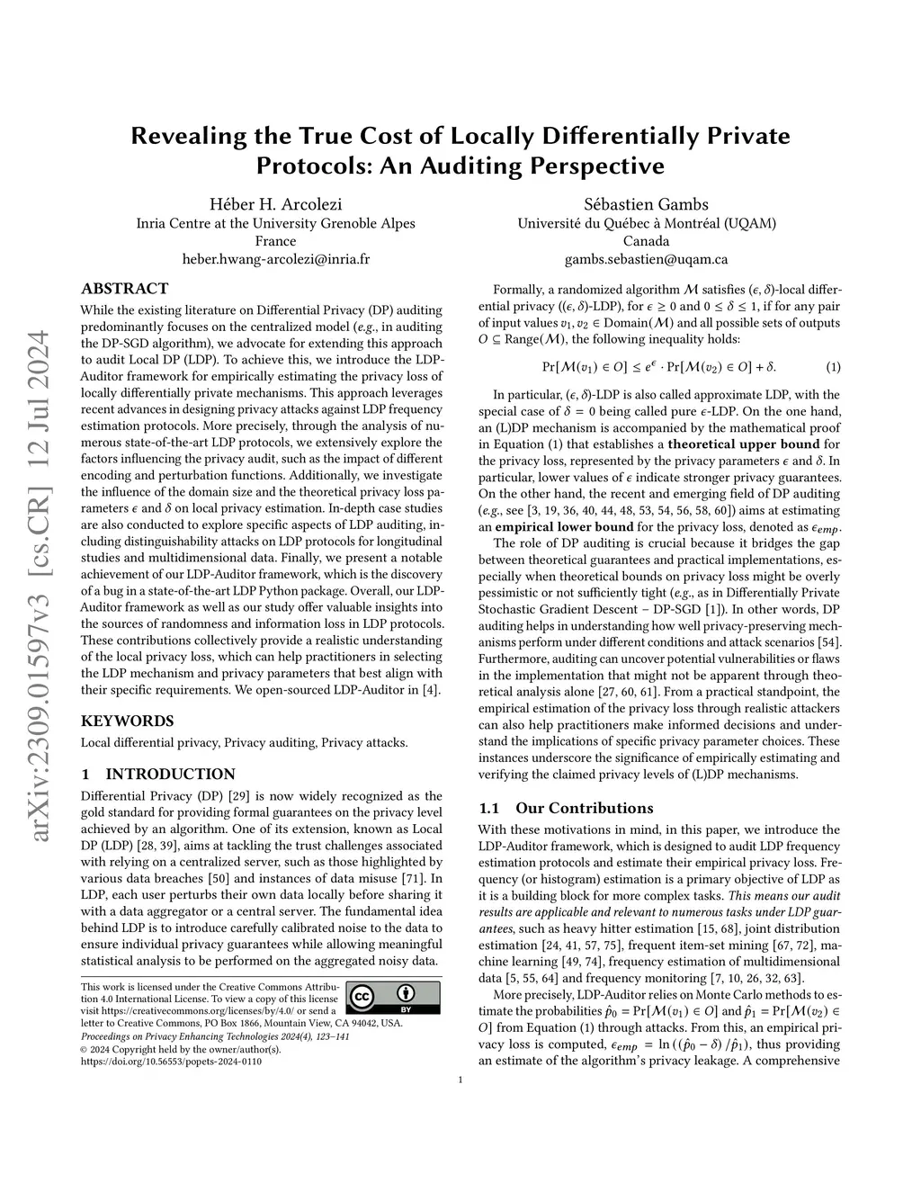 While the existing literature on Differential Privacy (DP) auditing predominantly focuses on the centralized model (e.g., in auditing the DP-SGD algorithm), we advocate for extending this approach to audit Local DP (LDP). To achieve this, we introduce the LDP-Auditor framework for empirically estimating the privacy loss of locally differentially private mechanisms. This approach leverages recent advances in designing privacy attacks against LDP frequency estimation protocols. More precisely, through the analysis of numerous state-of-the-art LDP protocols, we extensively explore the factors influencing the privacy audit, such as the impact of different encoding and perturbation functions. Additionally, we investigate the influence of the domain size and the theoretical privacy loss parameters and on local privacy estimation. In-depth case studies are also conducted to explore specific aspects of LDP auditing, including distinguishability attacks on LDP protocols for longitudinal studies and multidimensional data. Finally, we present a notable achievement of our LDP-Auditor framework, which is the discovery of a bug in a state-of-the-art LDP Python package. Overall, our LDP-Auditor framework as well as our study offer valuable insights into the sources of randomness and information loss in LDP protocols. These contributions collectively provide a realistic understanding of the local privacy loss, which can help practitioners in selecting the LDP mechanism and privacy parameters that best align with their specific requirements. We open-sourced LDP-Auditor in \url{https://github.com/hharcolezi/ldp-audit}.