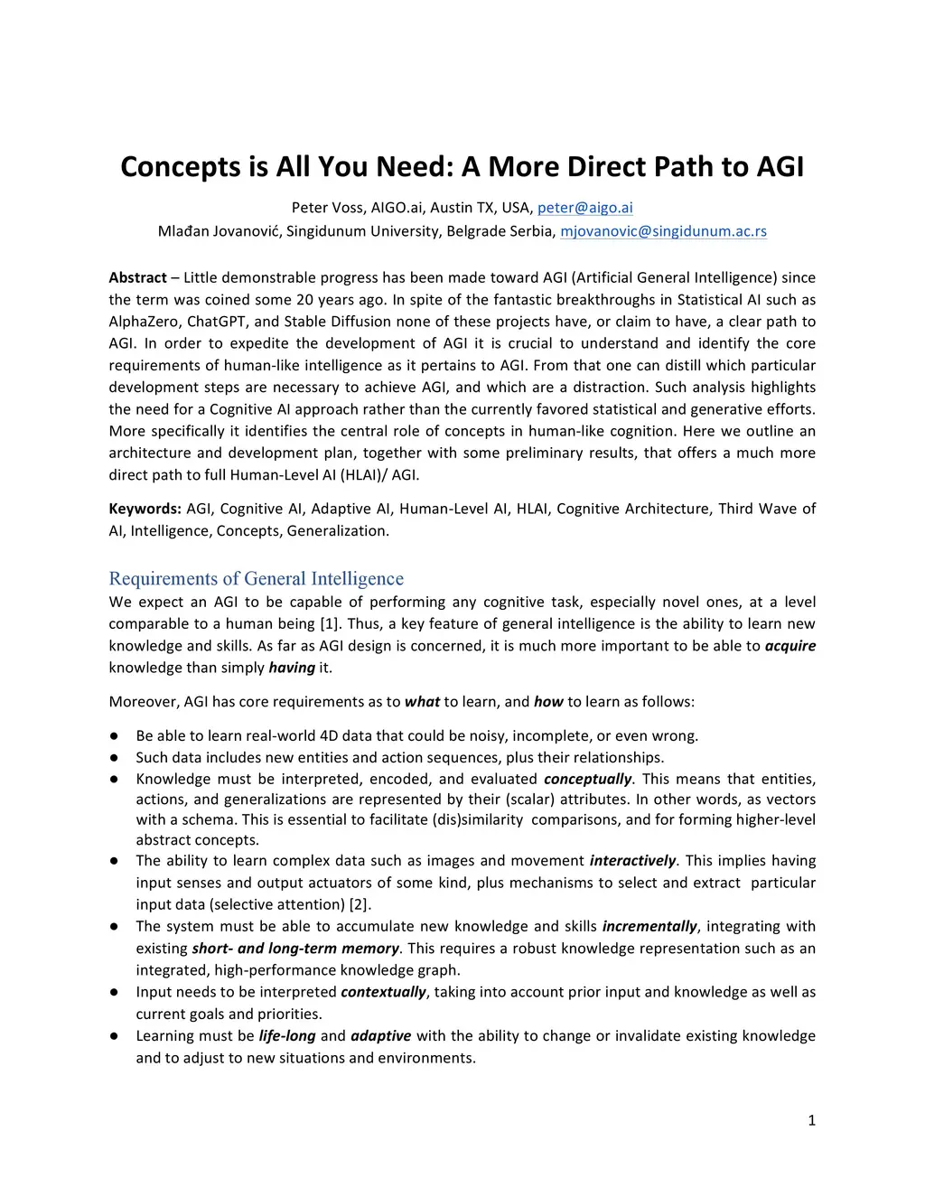 Little demonstrable progress has been made toward AGI (Artificial General Intelligence) since the term was coined some 20 years ago. In spite of the fantastic breakthroughs in Statistical AI such as AlphaZero, ChatGPT, and Stable Diffusion none of these projects have, or claim to have, a clear path to AGI. In order to expedite the development of AGI it is crucial to understand and identify the core requirements of human-like intelligence as it pertains to AGI. From that one can distill which particular development steps are necessary to achieve AGI, and which are a distraction. Such analysis highlights the need for a Cognitive AI approach rather than the currently favored statistical and generative efforts. More specifically it identifies the central role of concepts in human-like cognition. Here we outline an architecture and development plan, together with some preliminary results, that offers a much more direct path to full Human-Level AI (HLAI)/ AGI.