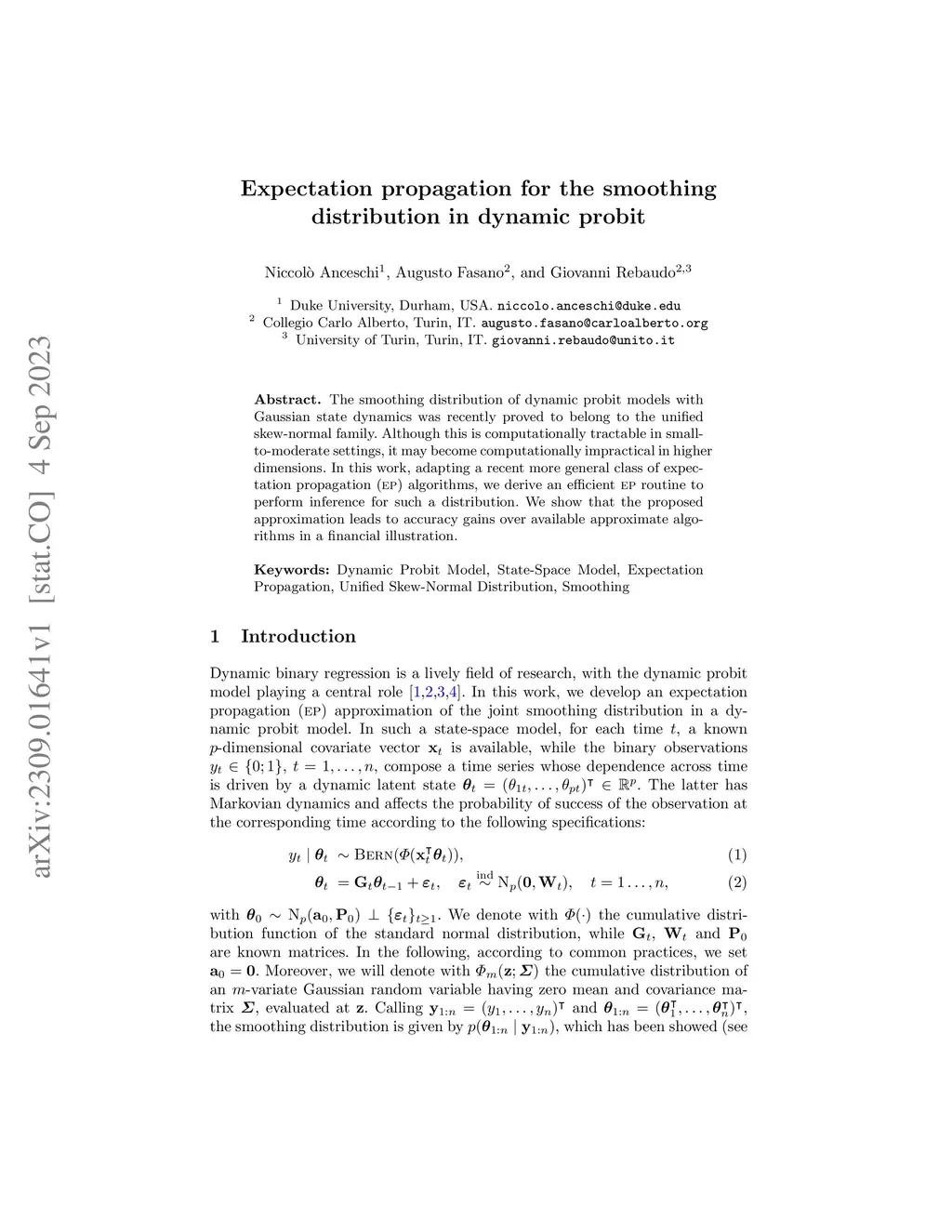The smoothing distribution of dynamic probit models with Gaussian state dynamics was recently proved to belong to the unified skew-normal family. Although this is computationally tractable in small-to-moderate settings, it may become computationally impractical in higher dimensions. In this work, adapting a recent more general class of expectation propagation (EP) algorithms, we derive an efficient EP routine to perform inference for such a distribution. We show that the proposed approximation leads to accuracy gains over available approximate algorithms in a financial illustration.