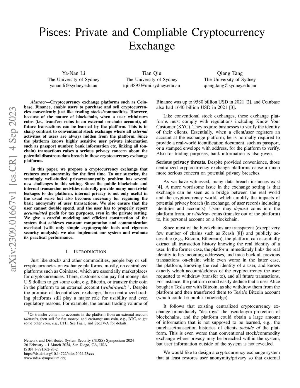 Pisces: Private and Compliable Cryptocurrency Exchange