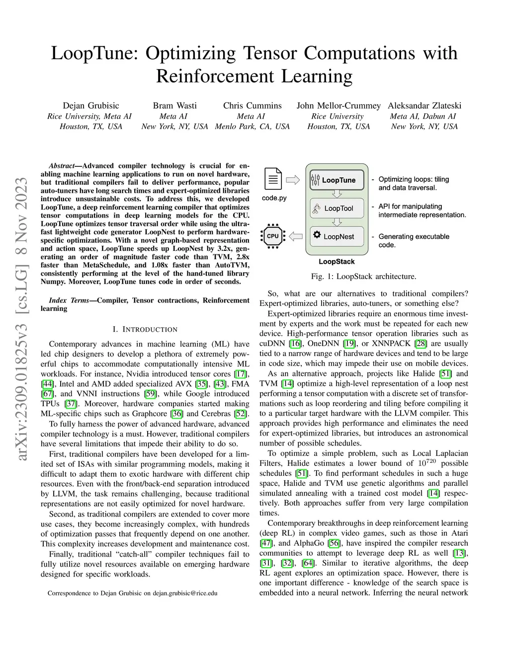 LoopTune: Optimizing Tensor Computations with Reinforcement Learning