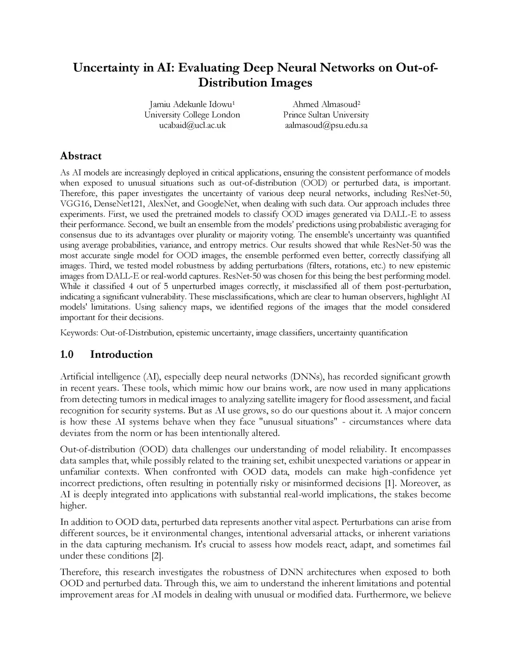 As AI models are increasingly deployed in critical applications, ensuring the consistent performance of models when exposed to unusual situations such as out-of-distribution (OOD) or perturbed data, is important. Therefore, this paper investigates the uncertainty of various deep neural networks, including ResNet-50, VGG16, DenseNet121, AlexNet, and GoogleNet, when dealing with such data. Our approach includes three experiments. First, we used the pretrained models to classify OOD images generated via DALL-E to assess their performance. Second, we built an ensemble from the models' predictions using probabilistic averaging for consensus due to its advantages over plurality or majority voting. The ensemble's uncertainty was quantified using average probabilities, variance, and entropy metrics. Our results showed that while ResNet-50 was the most accurate single model for OOD images, the ensemble performed even better, correctly classifying all images. Third, we tested model robustness by adding perturbations (filters, rotations, etc.) to new epistemic images from DALL-E or real-world captures. ResNet-50 was chosen for this being the best performing model. While it classified 4 out of 5 unperturbed images correctly, it misclassified all of them post-perturbation, indicating a significant vulnerability. These misclassifications, which are clear to human observers, highlight AI models' limitations. Using saliency maps, we identified regions of the images that the model considered important for their decisions.