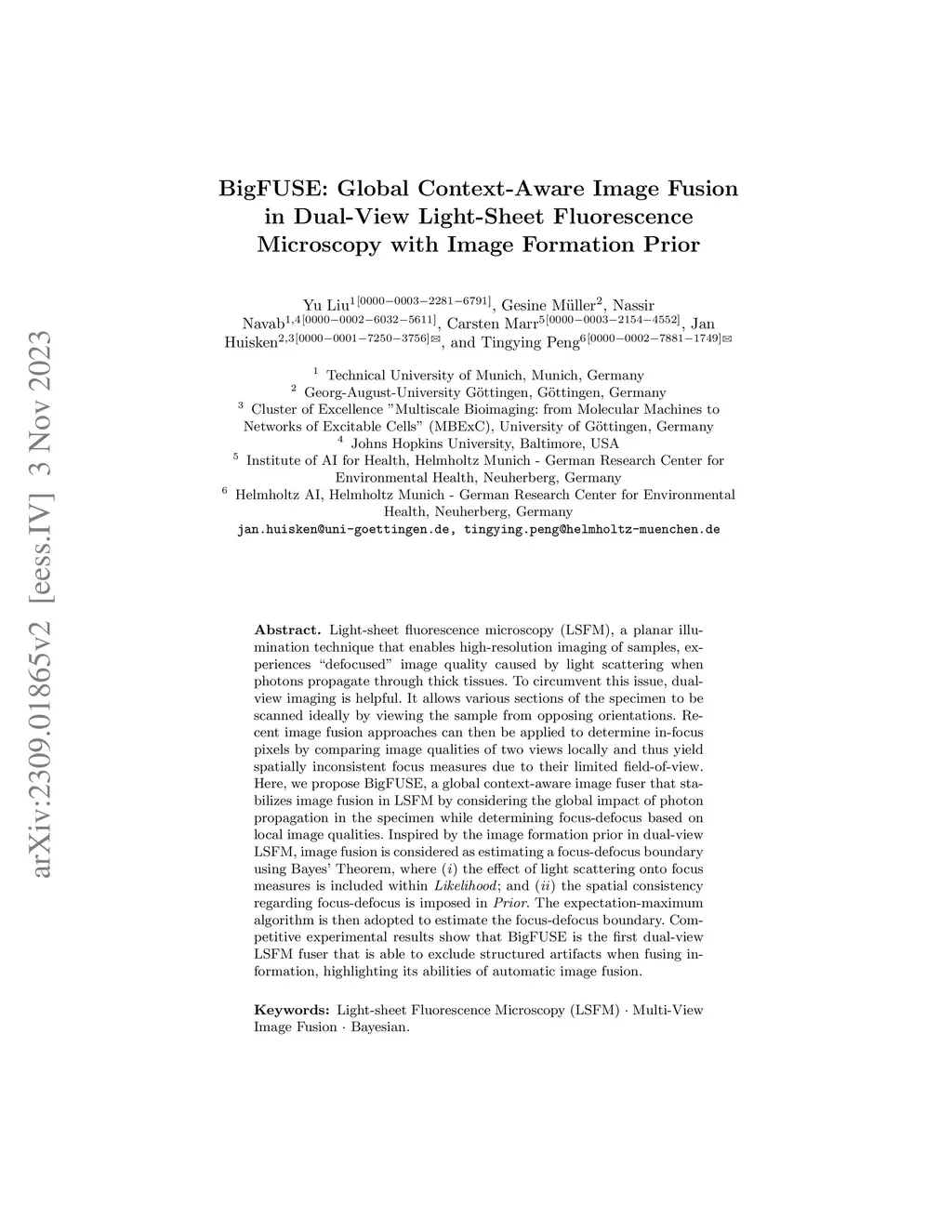 BigFUSE: Global Context-Aware Image Fusion in Dual-View Light-Sheet