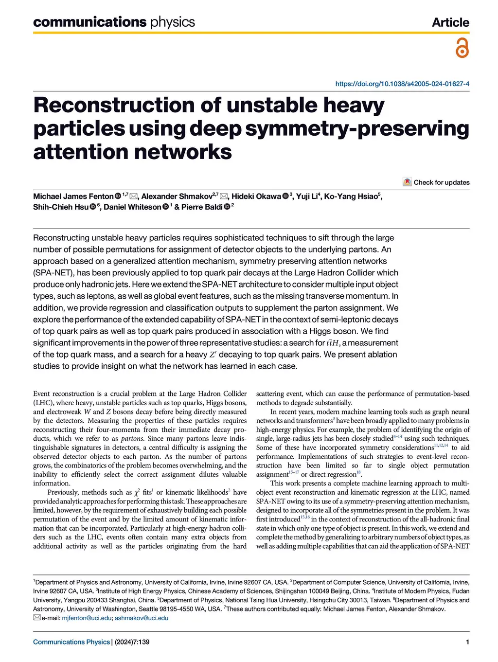 Reconstructing unstable heavy particles requires sophisticated techniques to sift through the large number of possible permutations for assignment of detector objects to the underlying partons. Anapproach based on a generalized attention mechanism, symmetry preserving attention networks (SPA-NET), has been previously applied to top quark pair decays at the Large Hadron Collider which produce only hadronic jets. Here we extend the SPA-NET architecture to consider multiple input object types, such as leptons, as well as global event features, such as the missing transverse momentum. Inaddition, we provide regression and classification outputs to supplement the parton assignment. We explore the performance of the extended capability of SPA-NET in the context of semi-leptonic decays of top quark pairs as well as top quark pairs produced in association with a Higgs boson. We find significant improvements in the power of three representative studies: a search for ttH, a measurement of the top quark mass, and a search for a heavy Z' decaying to top quark pairs. We present ablation studies to provide insight on what the network has learned in each case.