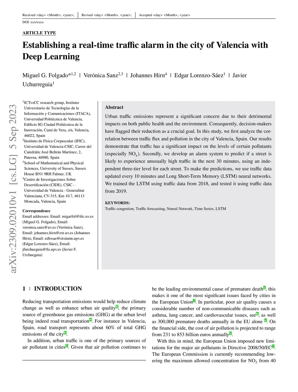 Establishing a real-time traffic alarm in the city of Valencia with Deep