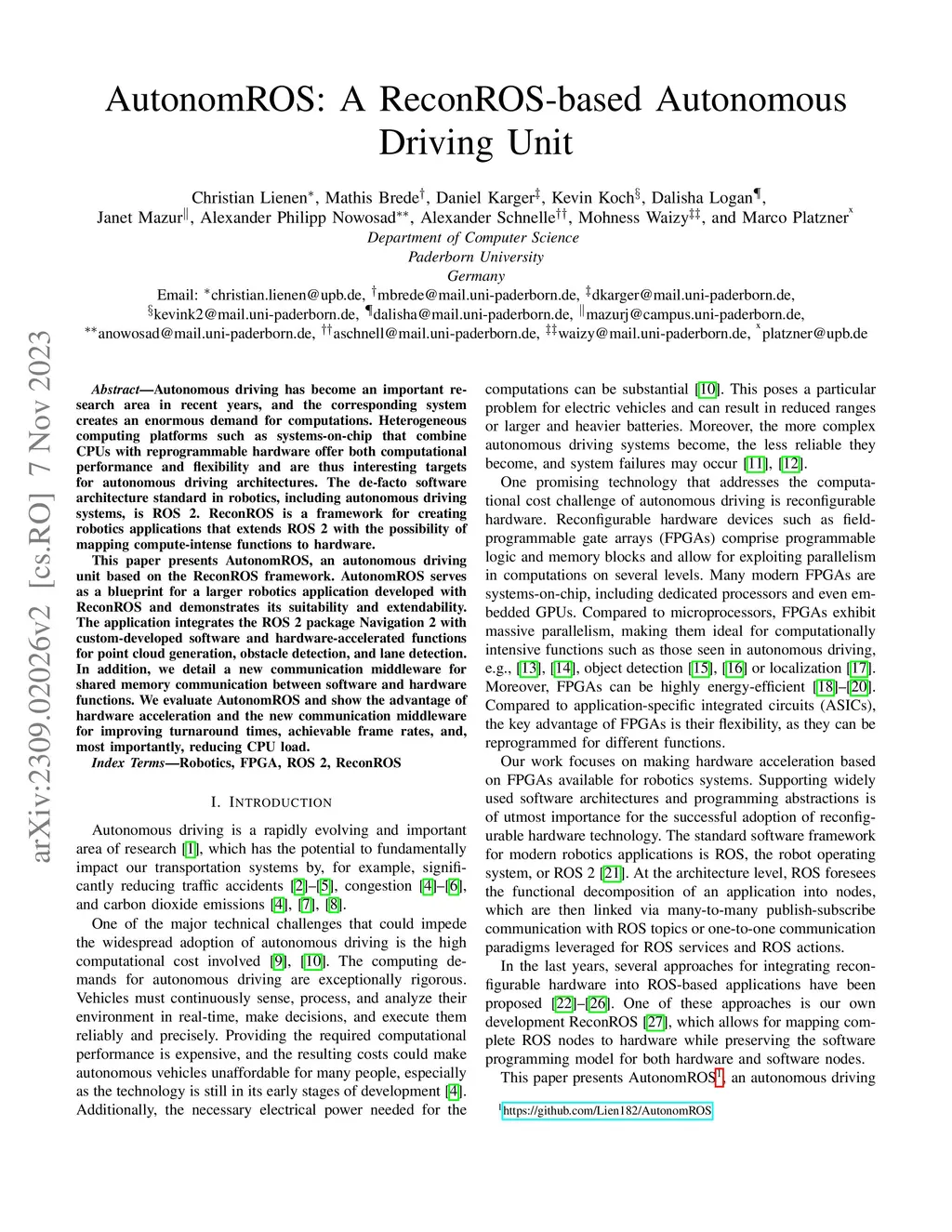 AutonomROS: A ReconROS-based Autonomous Driving Unit