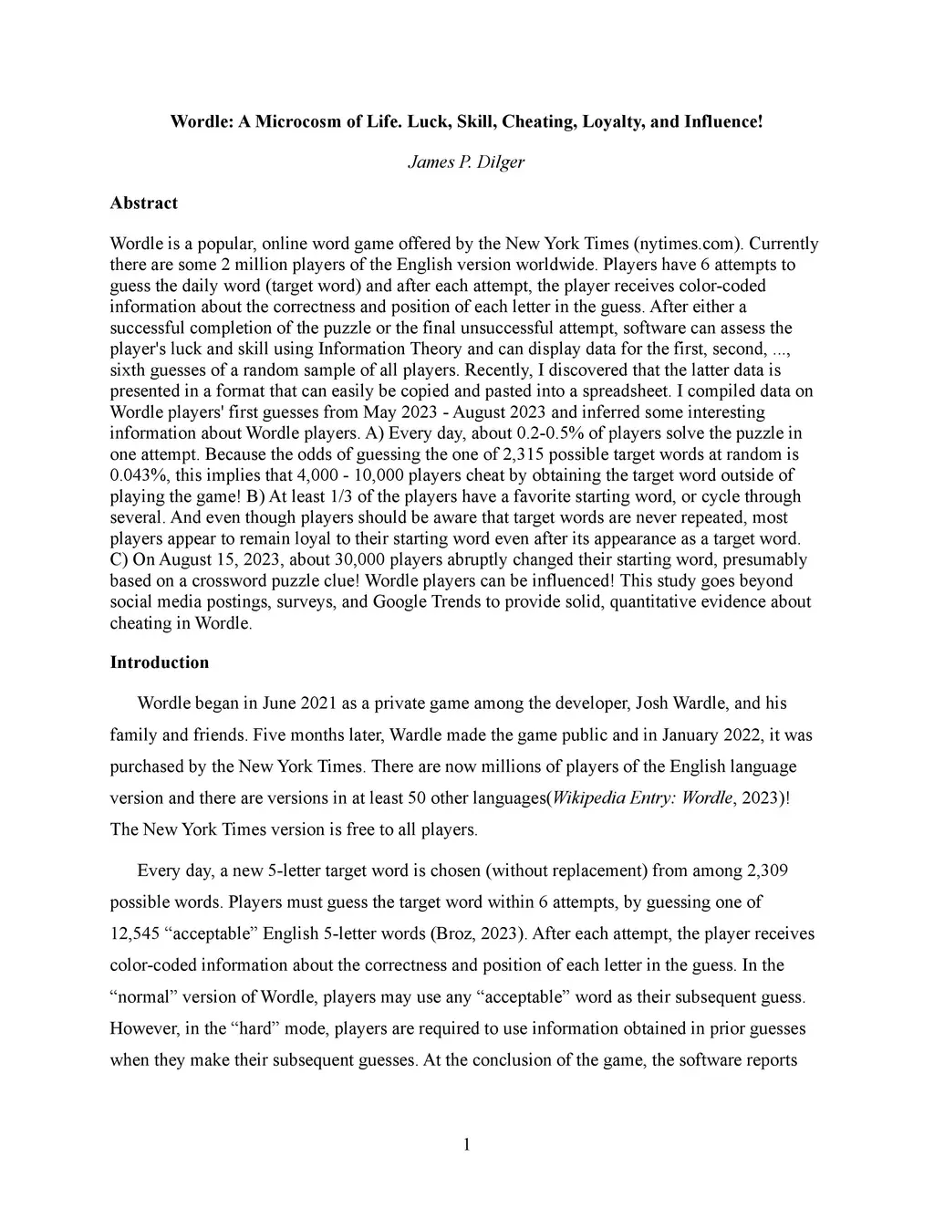 Wordle: A Microcosm of Life. Luck, Skill, Cheating, Loyalty, and