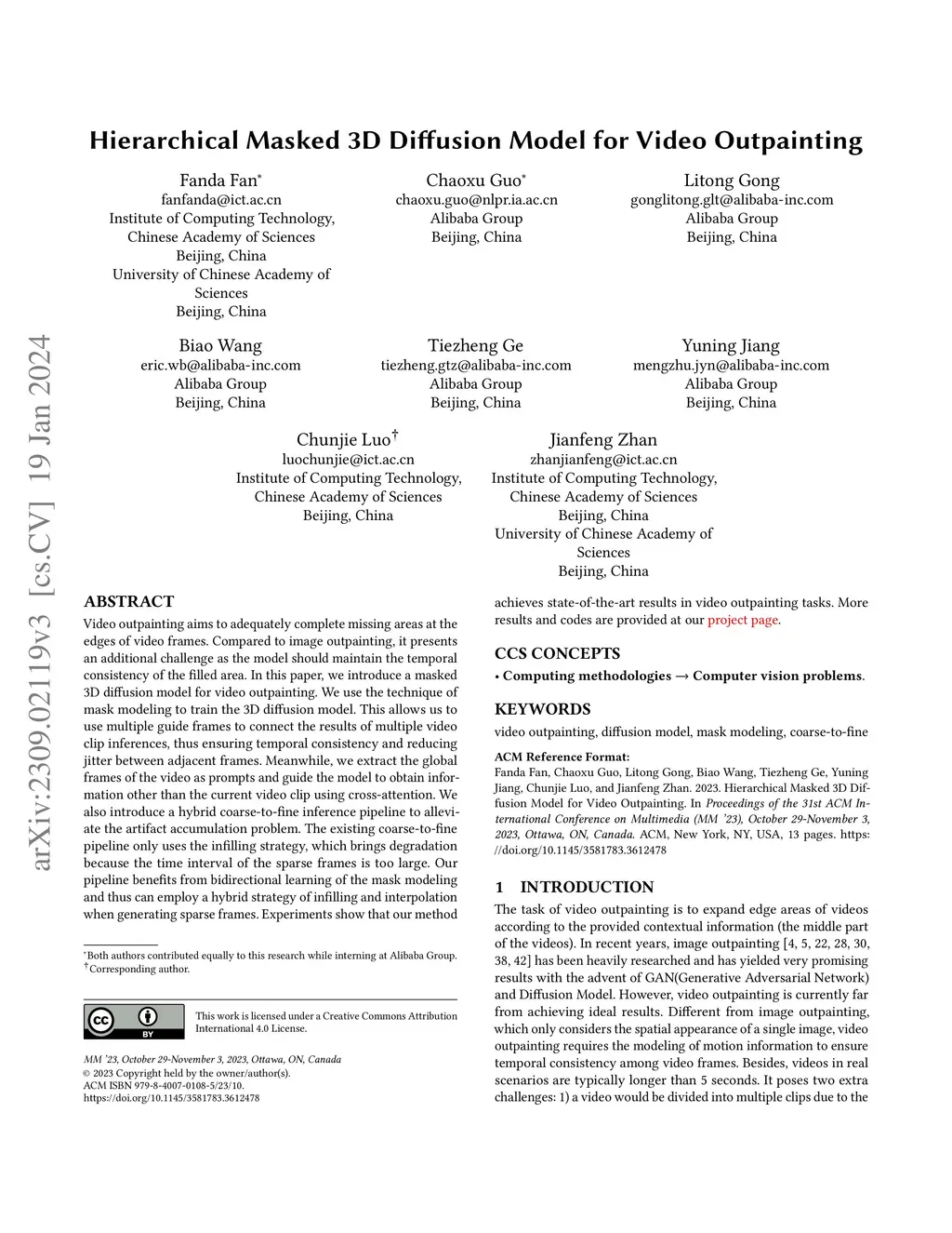 Hierarchical Masked 3D Diffusion Model for Video Outpainting