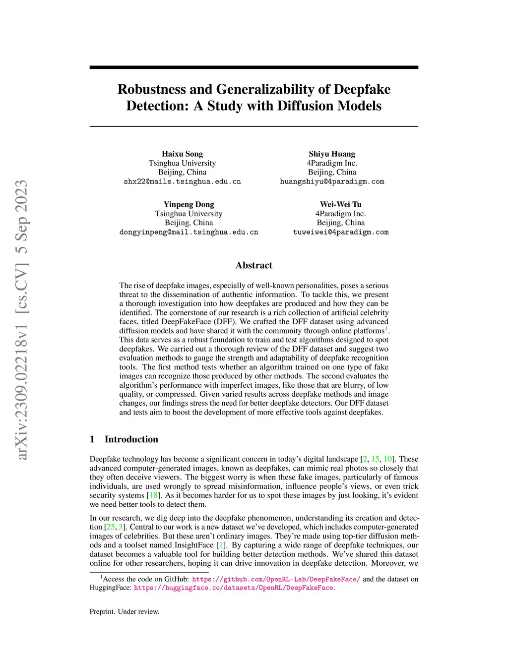The rise of deepfake images, especially of well-known personalities, poses a serious threat to the dissemination of authentic information. To tackle this, we present a thorough investigation into how deepfakes are produced and how they can be identified. The cornerstone of our research is a rich collection of artificial celebrity faces, titled DeepFakeFace (DFF). We crafted the DFF dataset using advanced diffusion models and have shared it with the community through online platforms. This data serves as a robust foundation to train and test algorithms designed to spot deepfakes. We carried out a thorough review of the DFF dataset and suggest two evaluation methods to gauge the strength and adaptability of deepfake recognition tools. The first method tests whether an algorithm trained on one type of fake images can recognize those produced by other methods. The second evaluates the algorithm's performance with imperfect images, like those that are blurry, of low quality, or compressed. Given varied results across deepfake methods and image changes, our findings stress the need for better deepfake detectors. Our DFF dataset and tests aim to boost the development of more effective tools against deepfakes.